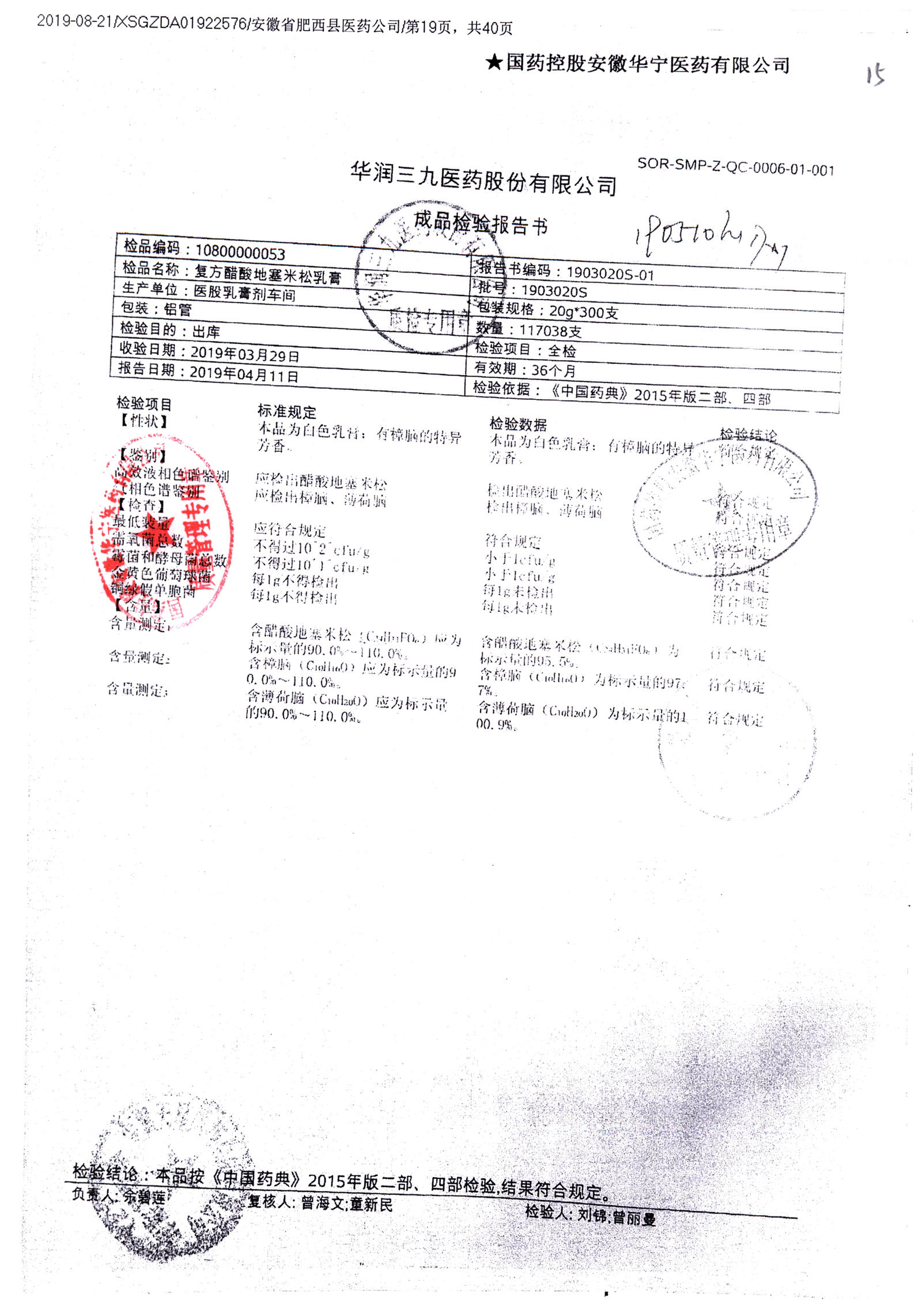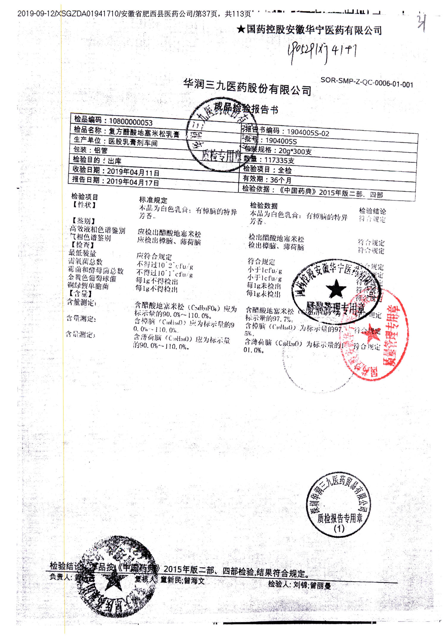 復(fù)方醋酸地塞米松乳膏 | 20g | 1904005S | 查看詳情 |