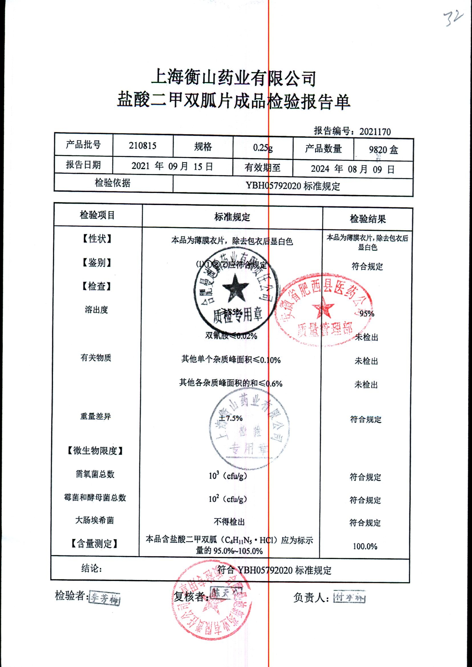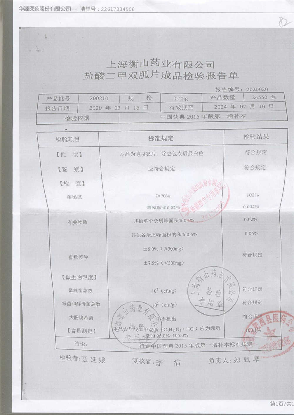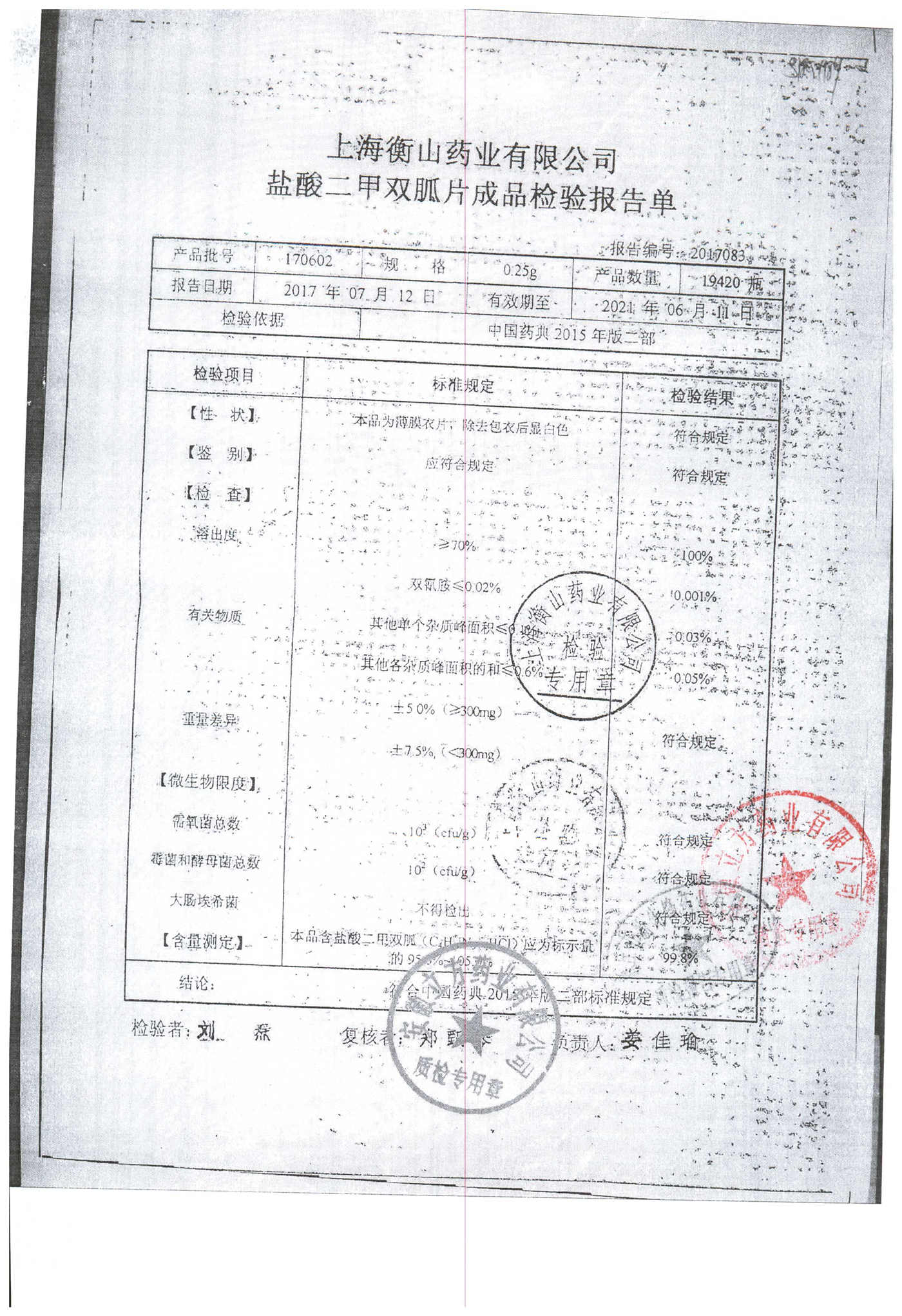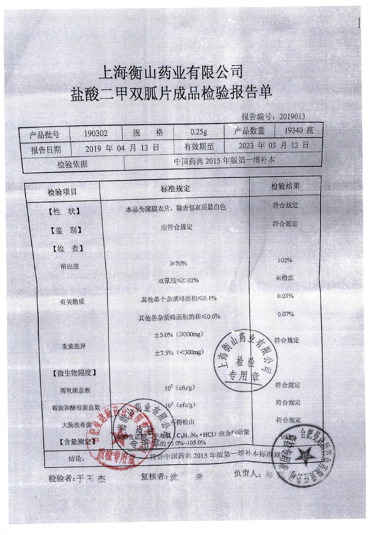 鹽酸二甲雙胍片 | 0.25g | 210815 | 查看詳情 |
