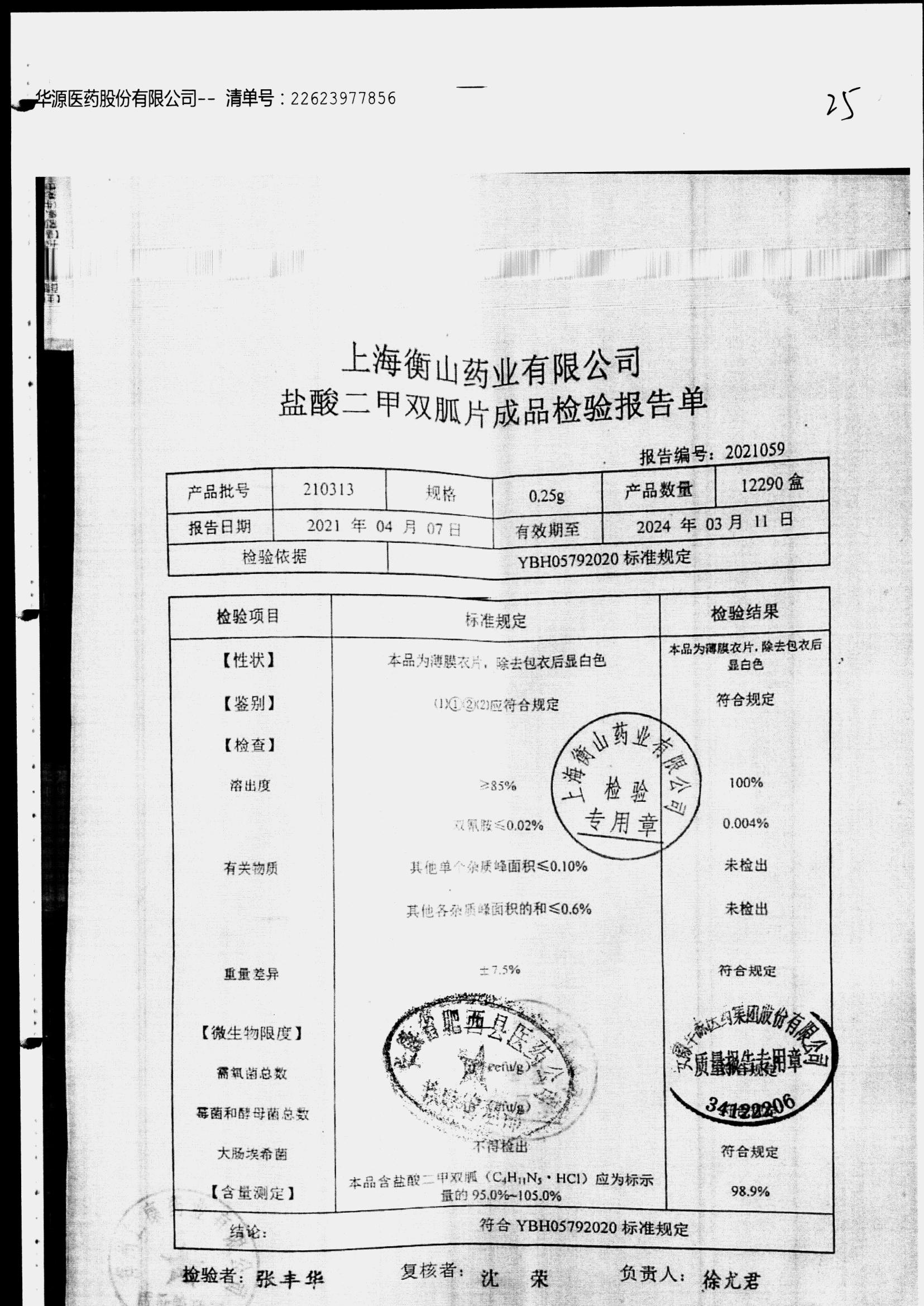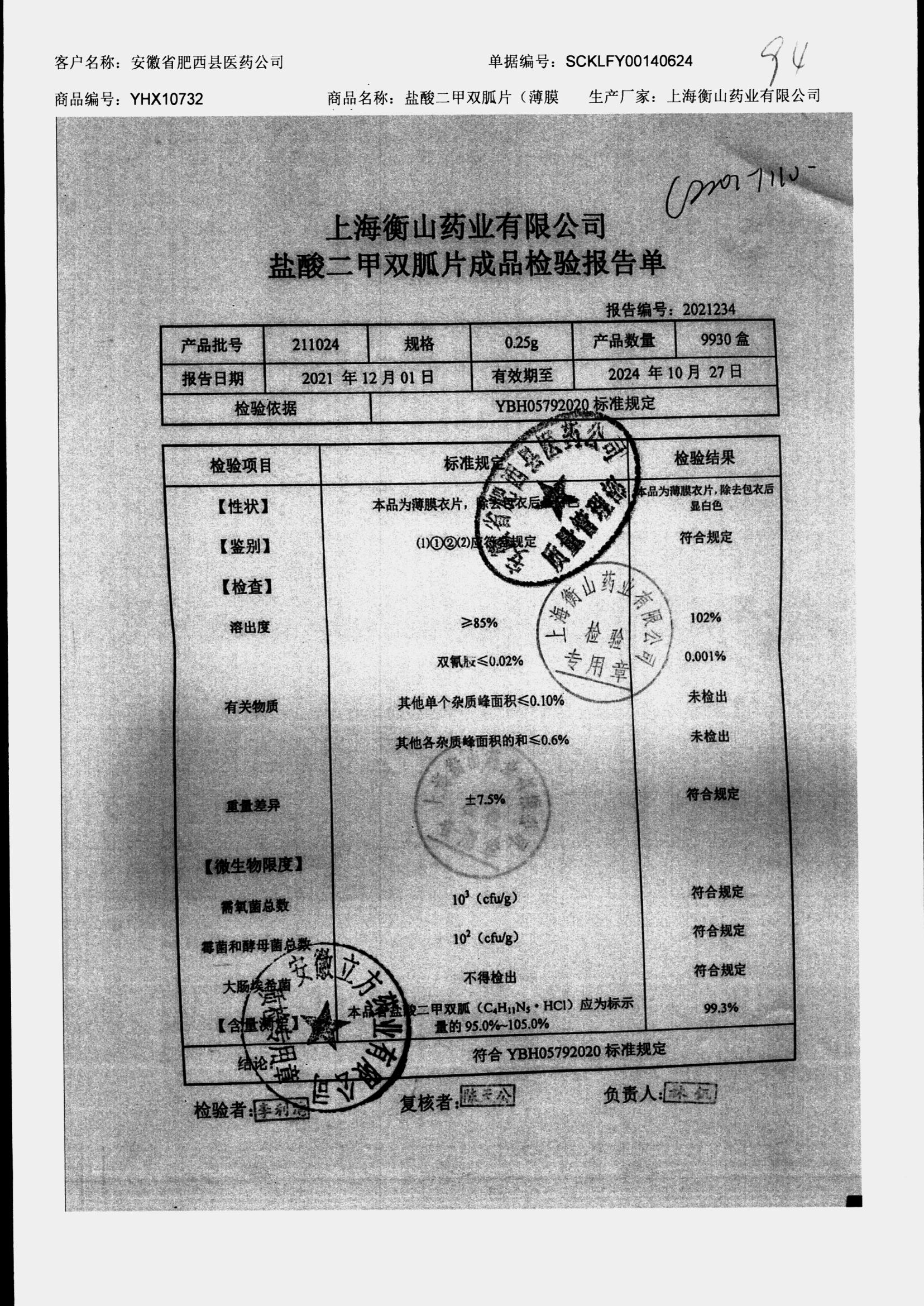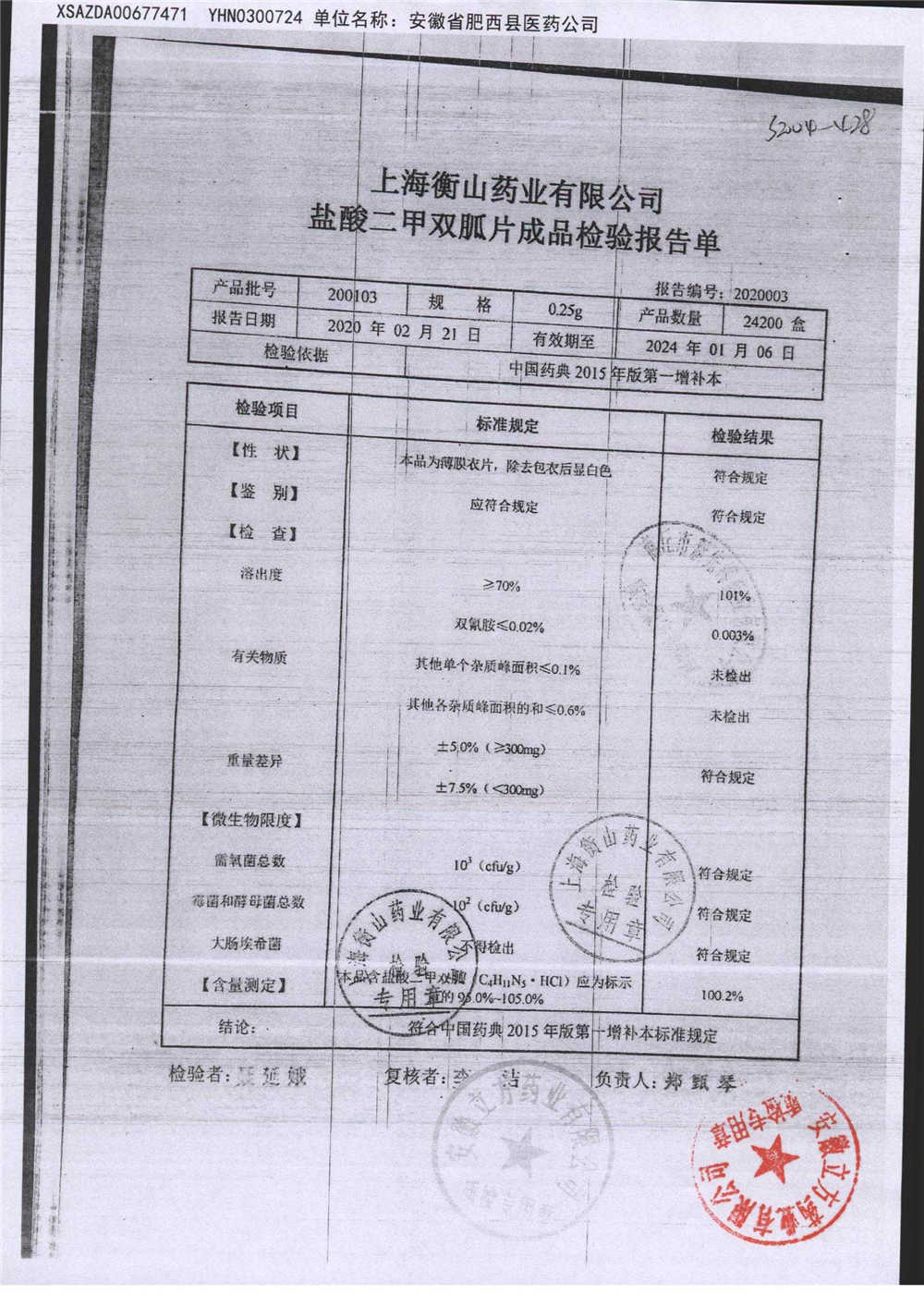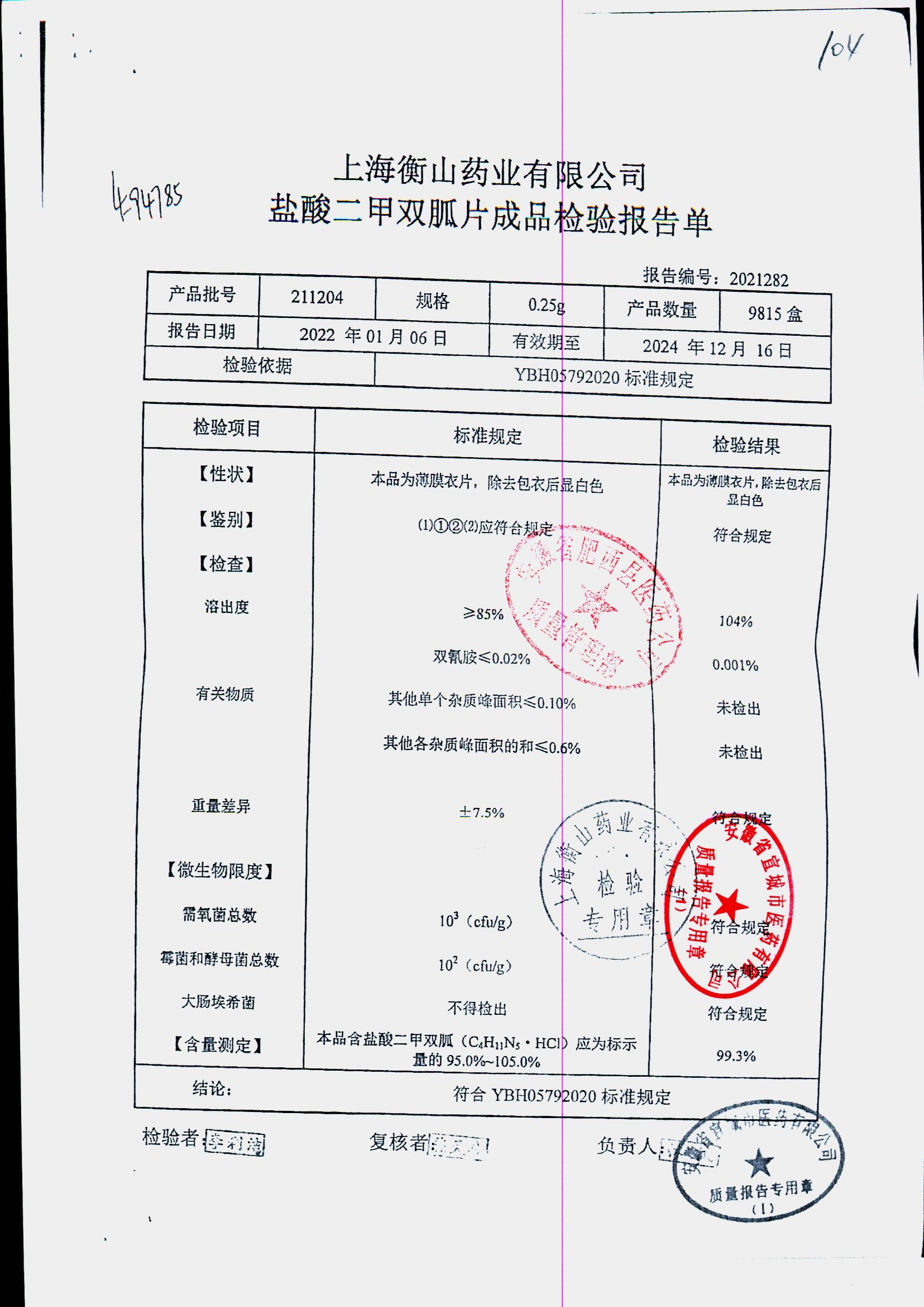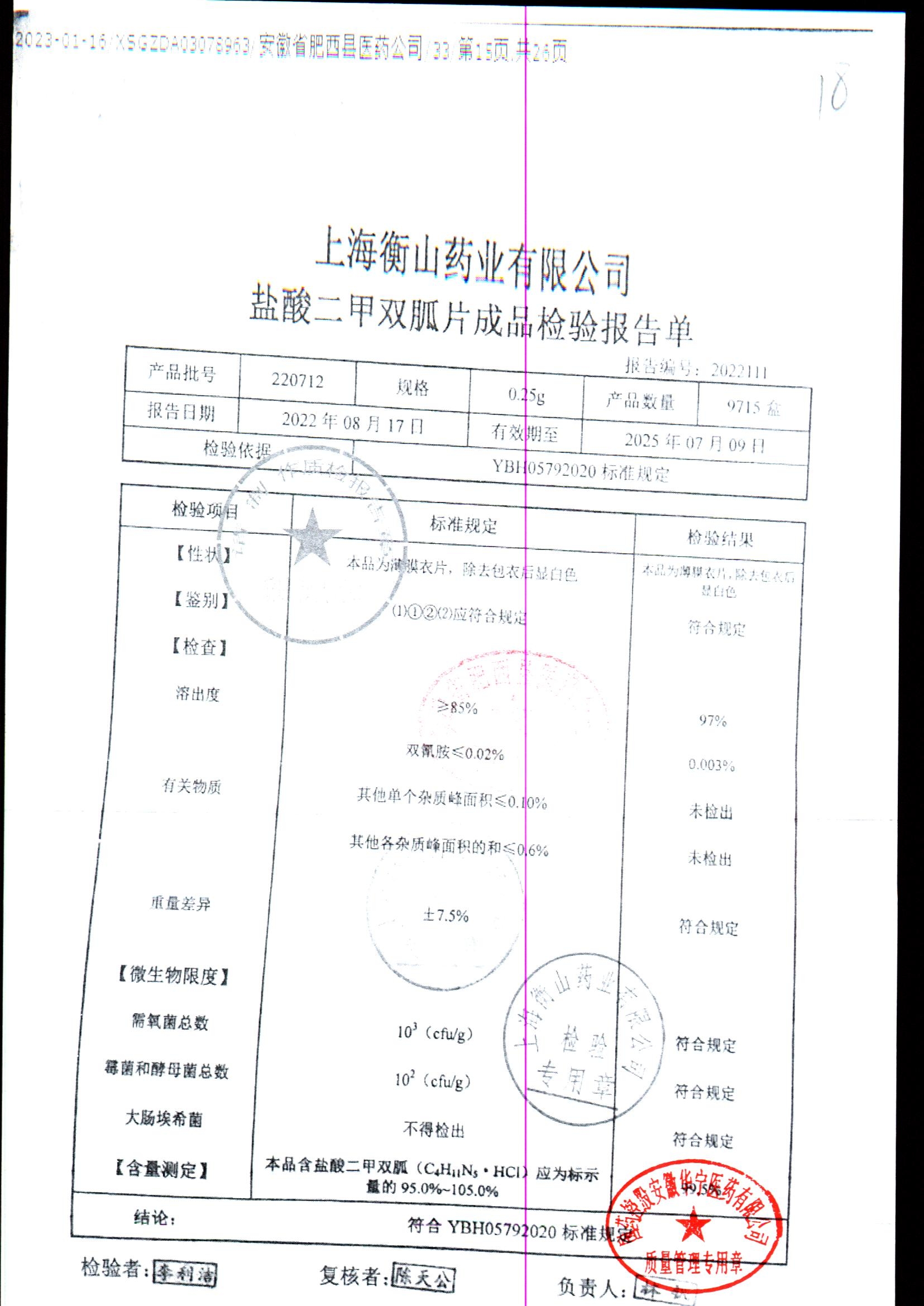 鹽酸二甲雙胍片 | 0.25g | 210815 | 查看詳情 |