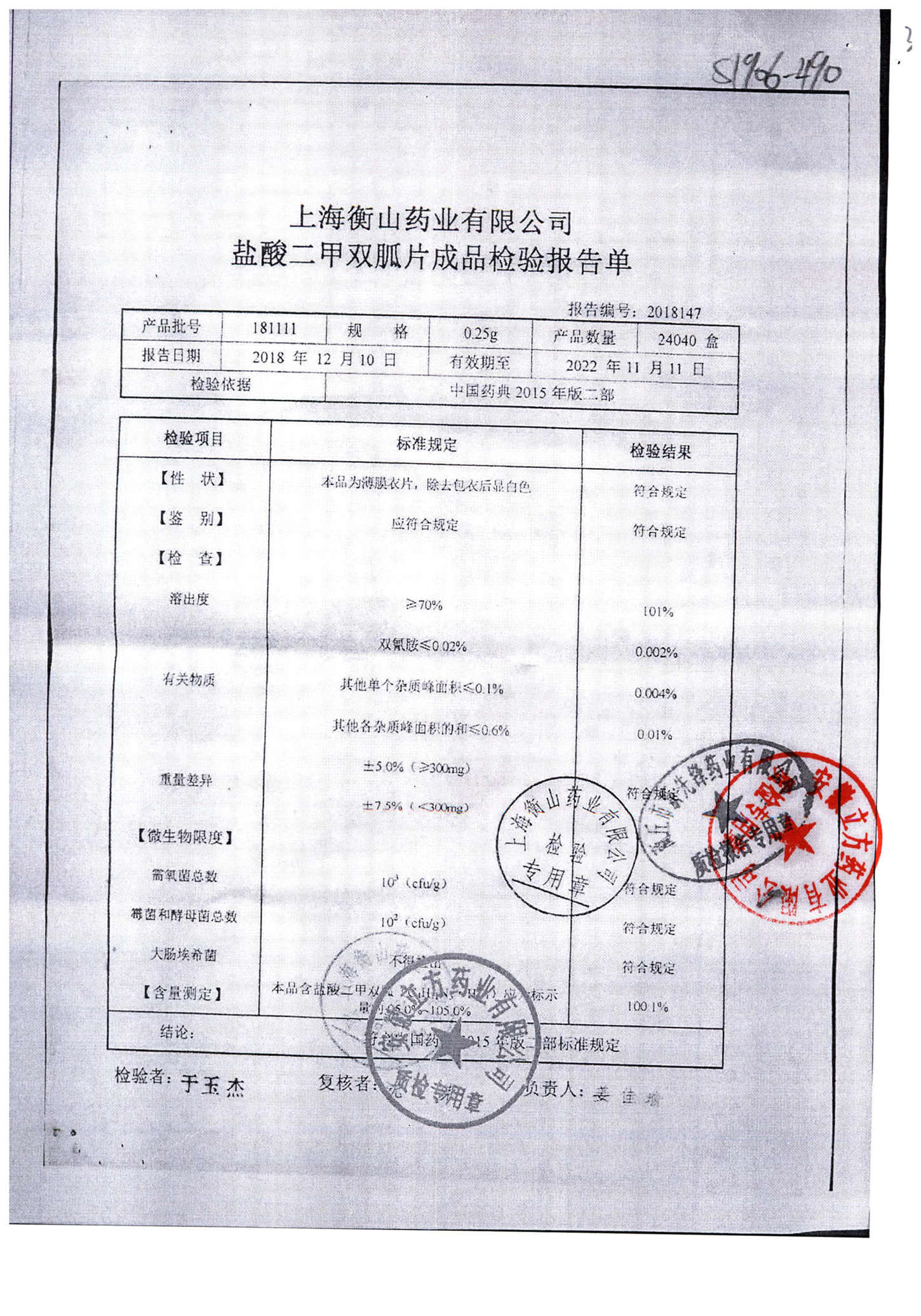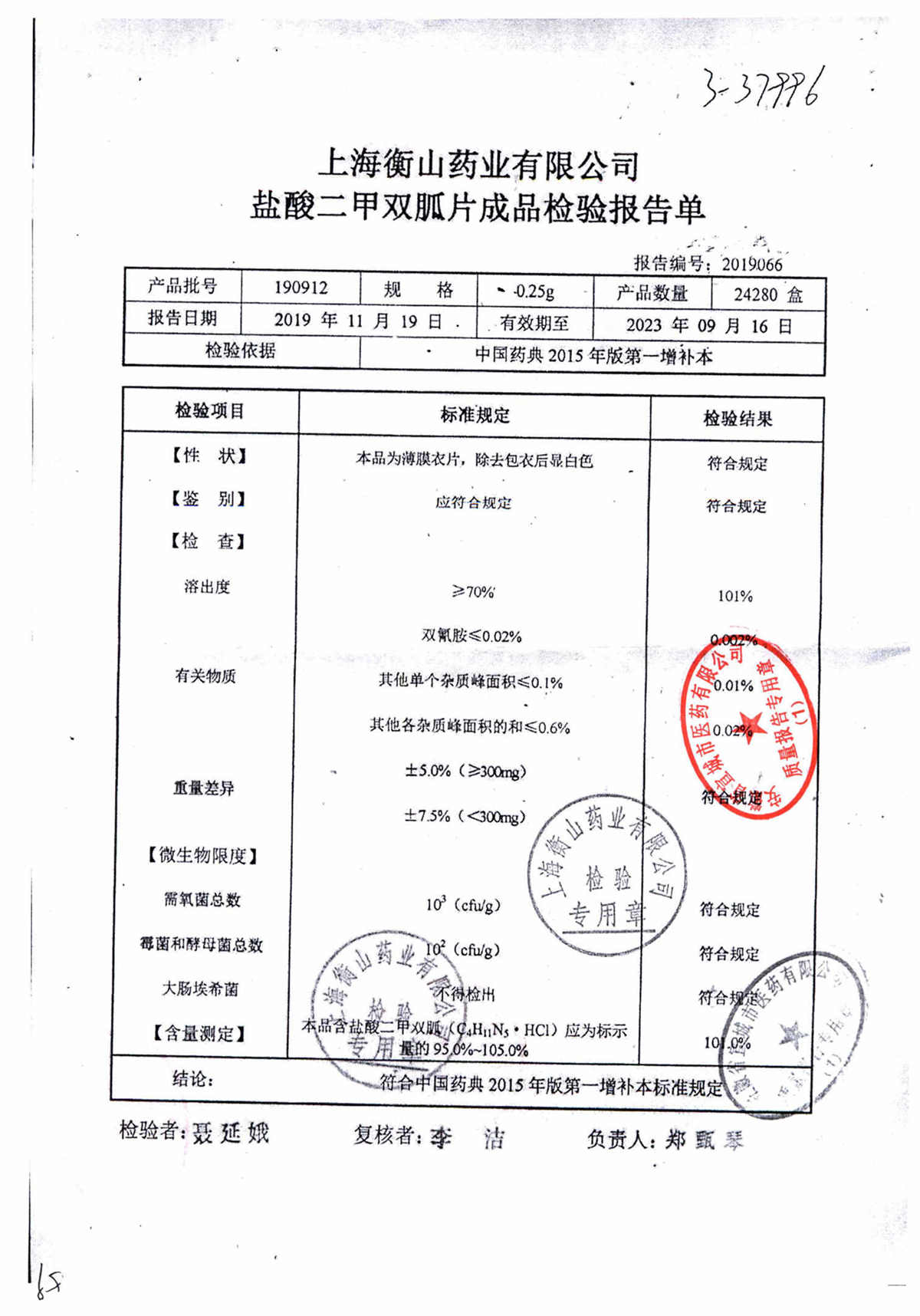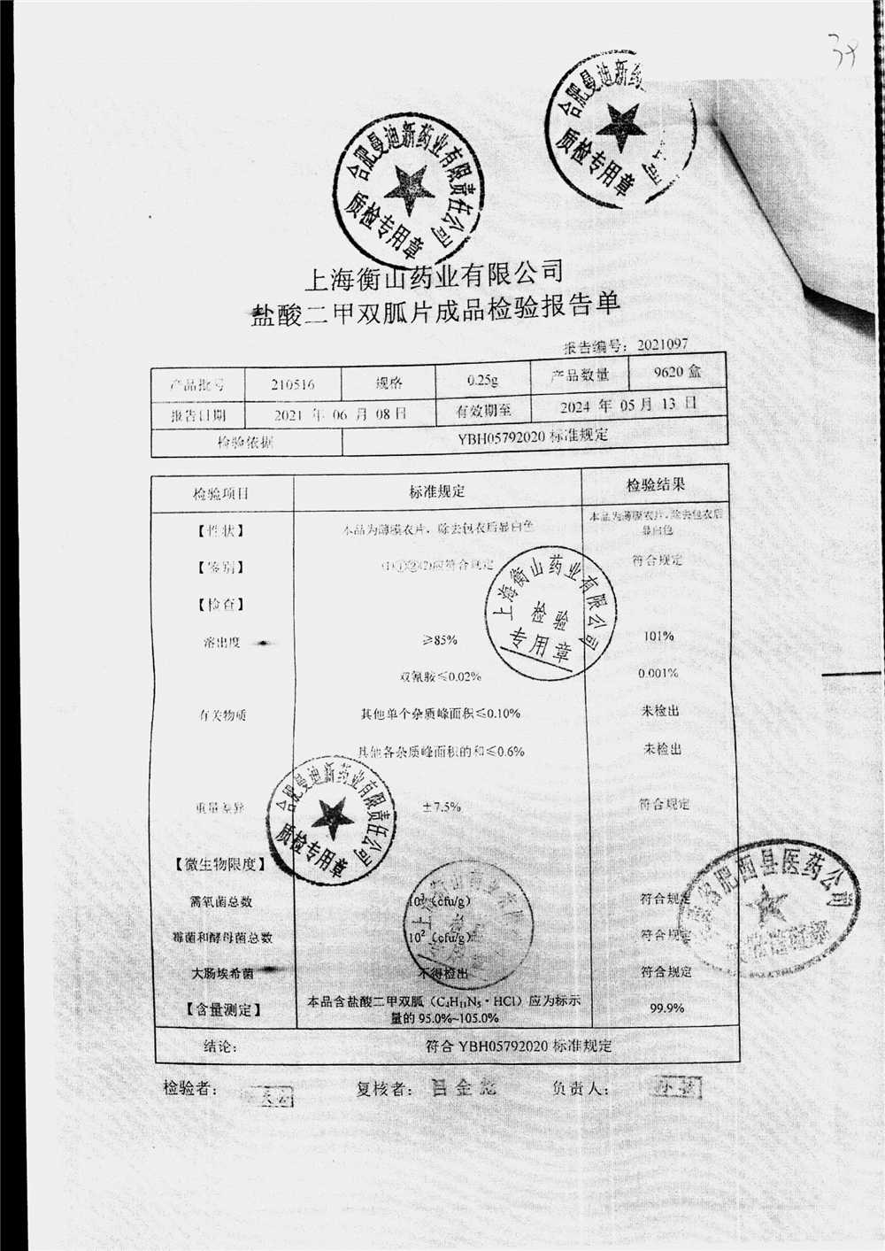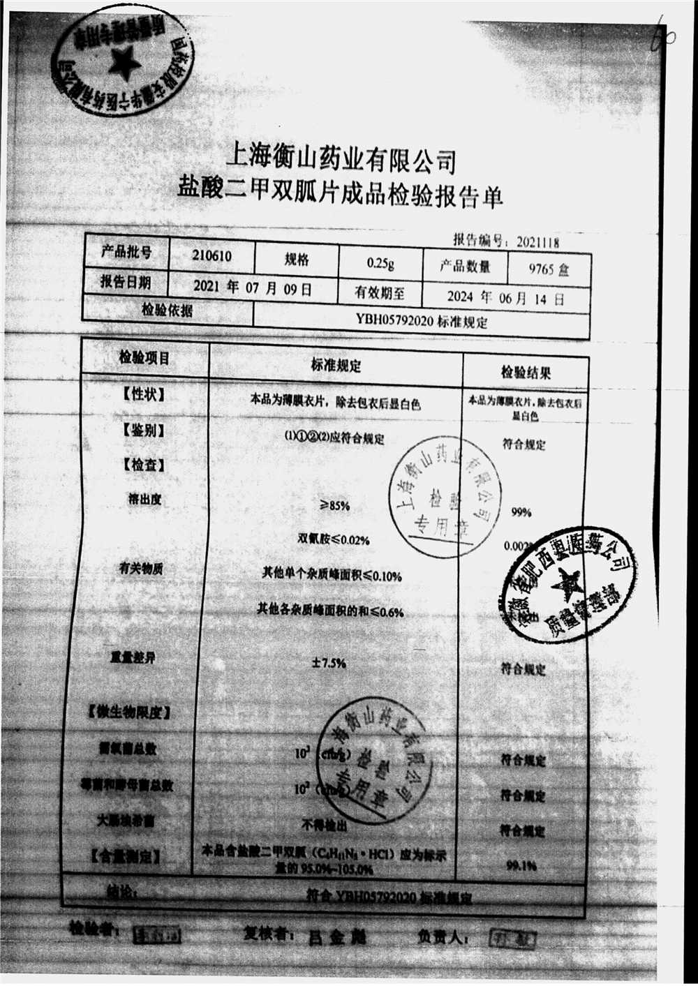 鹽酸二甲雙胍片 | 0.25g | 210815 | 查看詳情 |