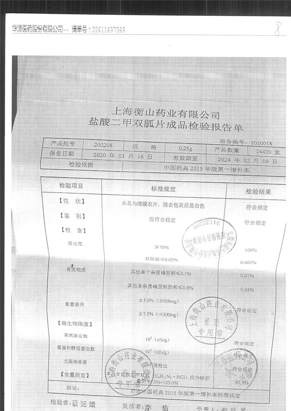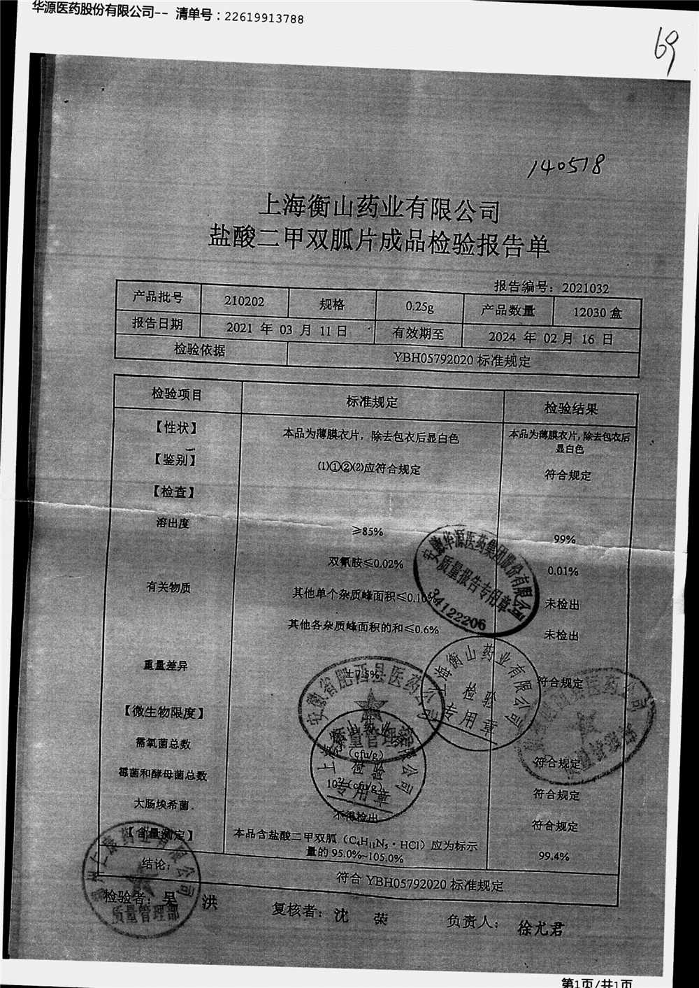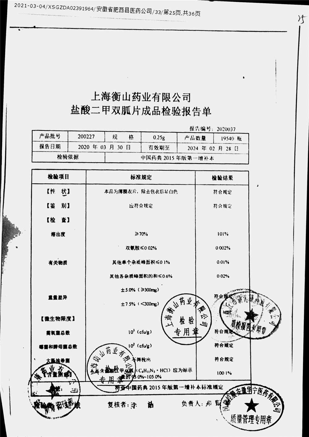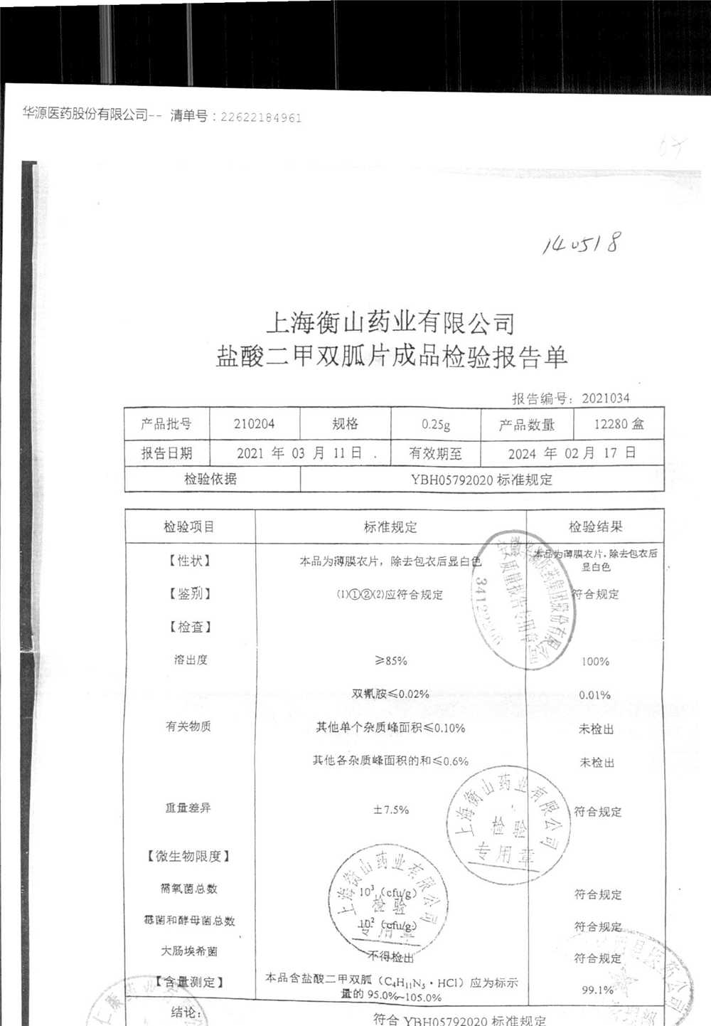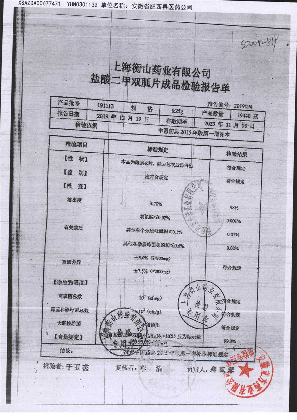 鹽酸二甲雙胍片 | 0.25g | 210815 | 查看詳情 |