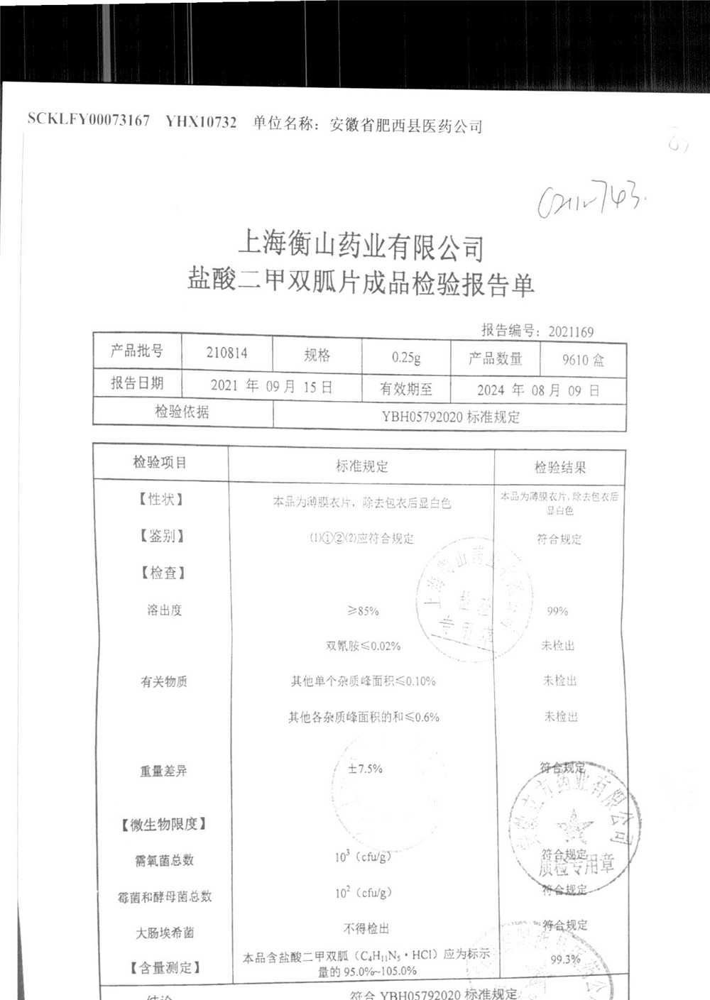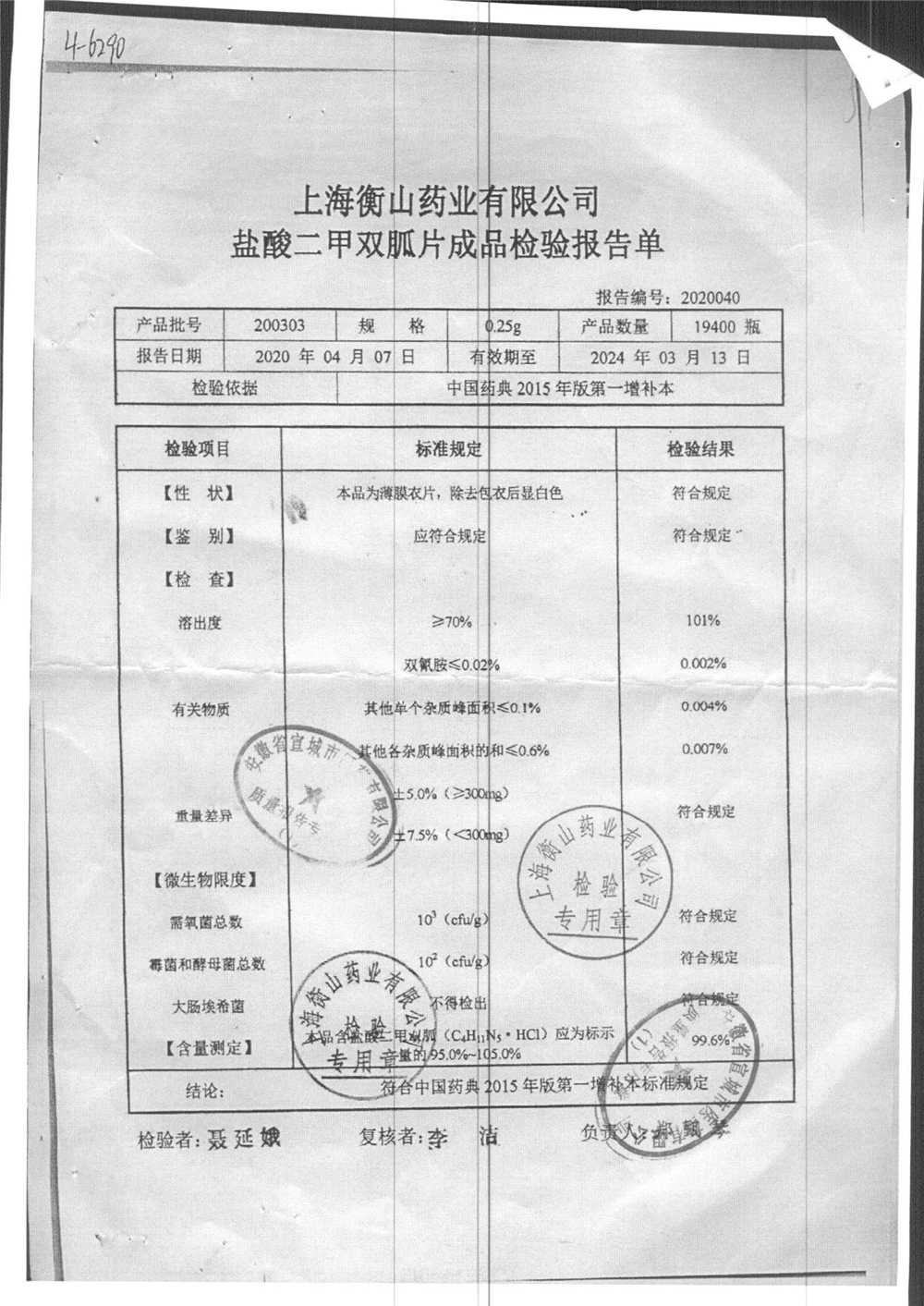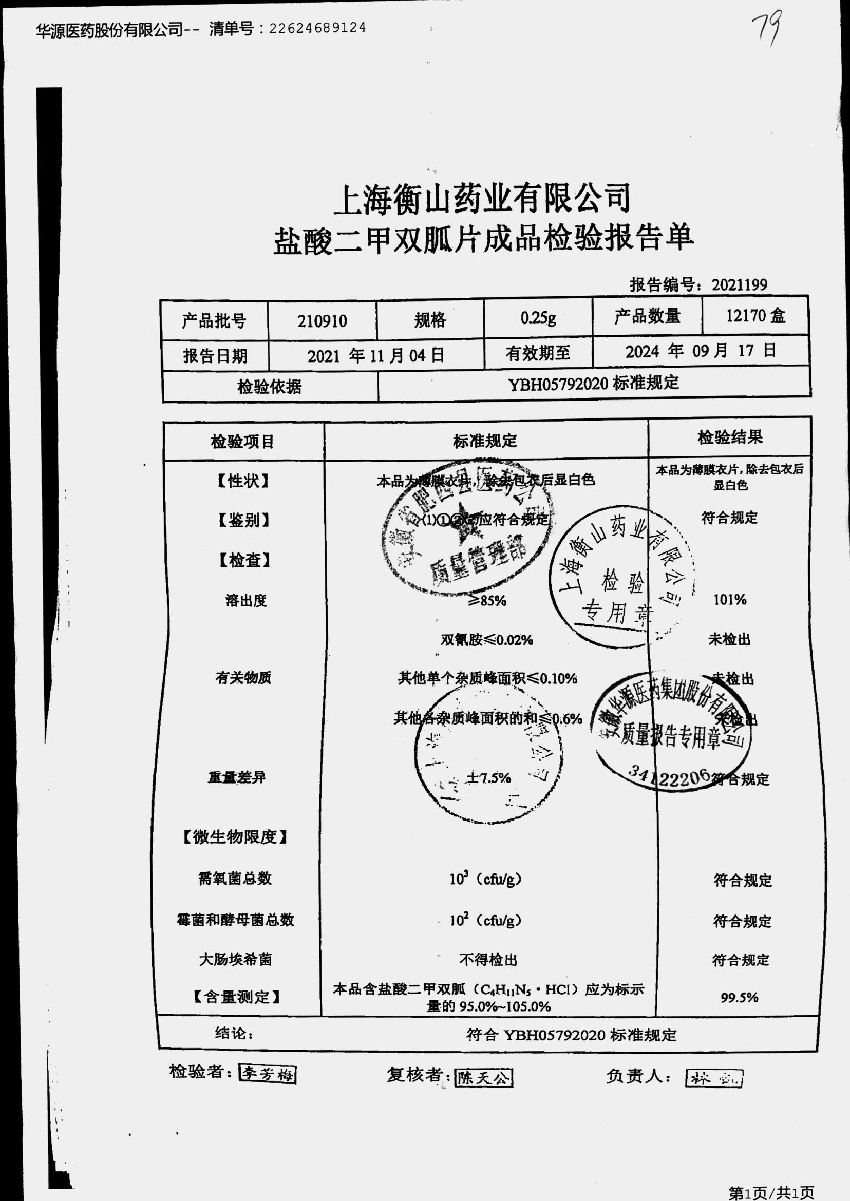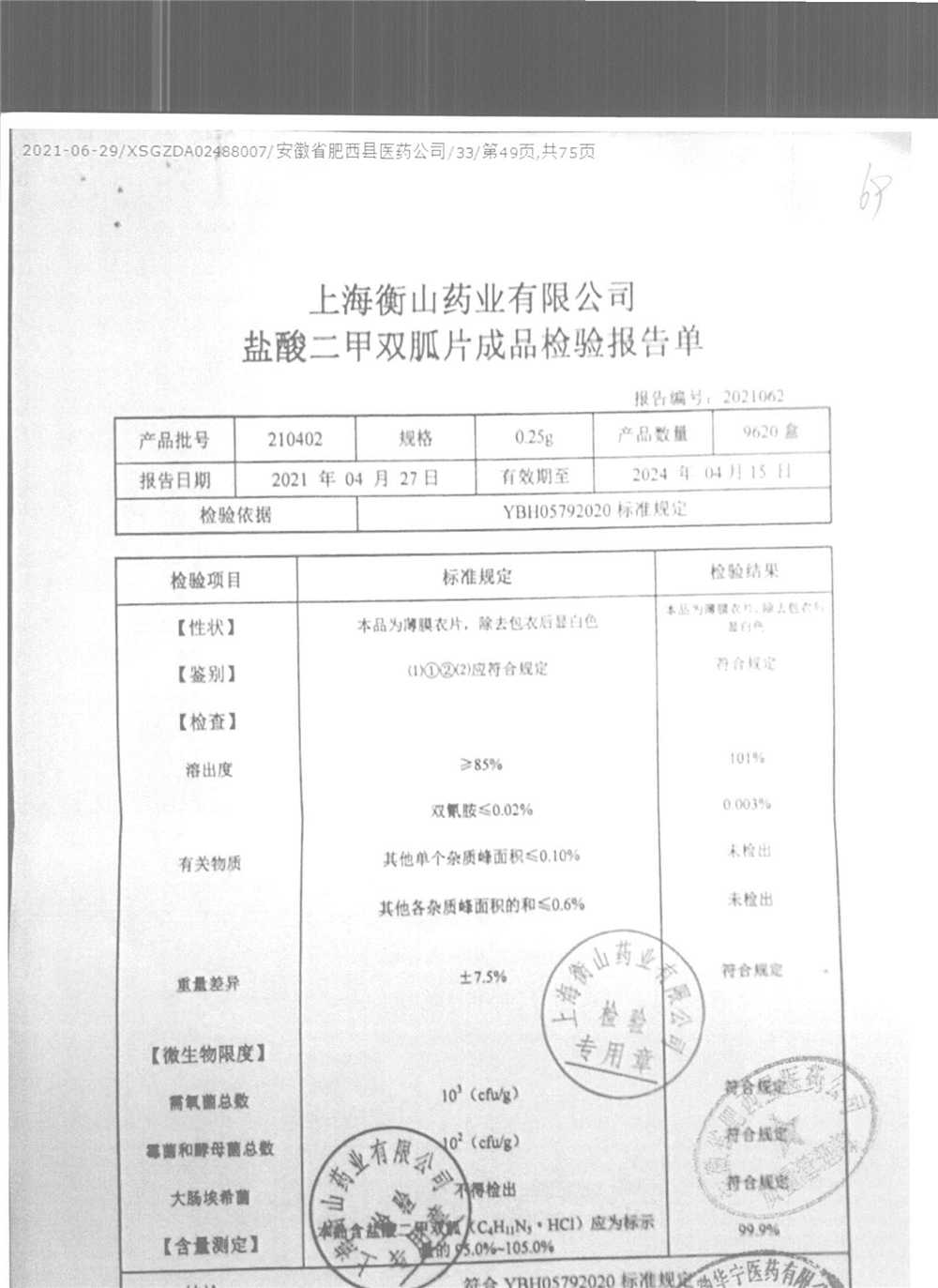 鹽酸二甲雙胍片 | 0.25g | 210815 | 查看詳情 |