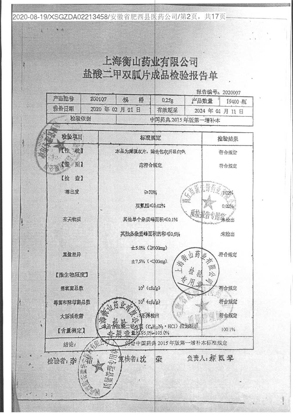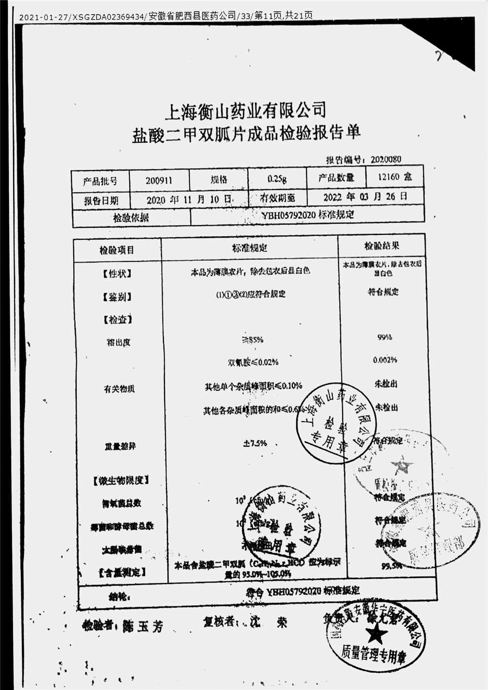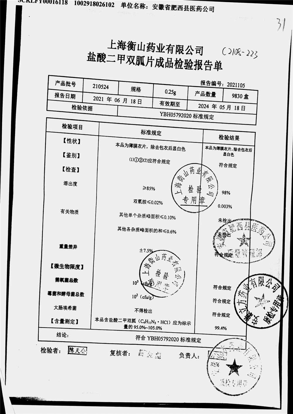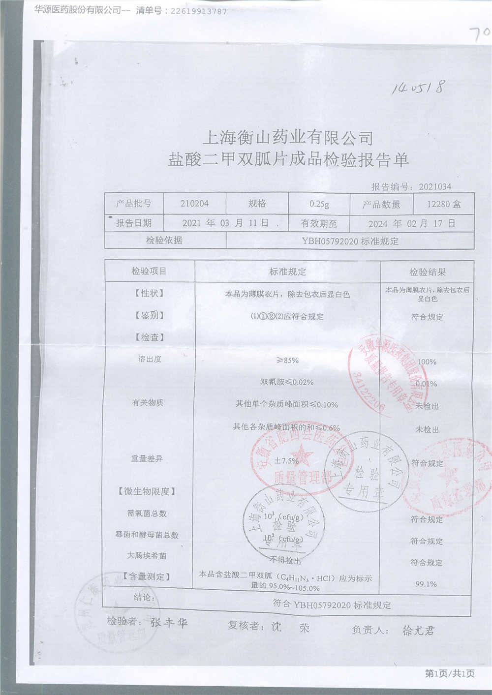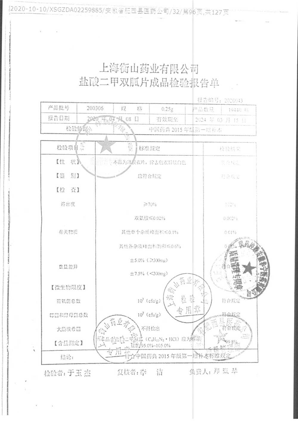 鹽酸二甲雙胍片 | 0.25g | 210815 | 查看詳情 |