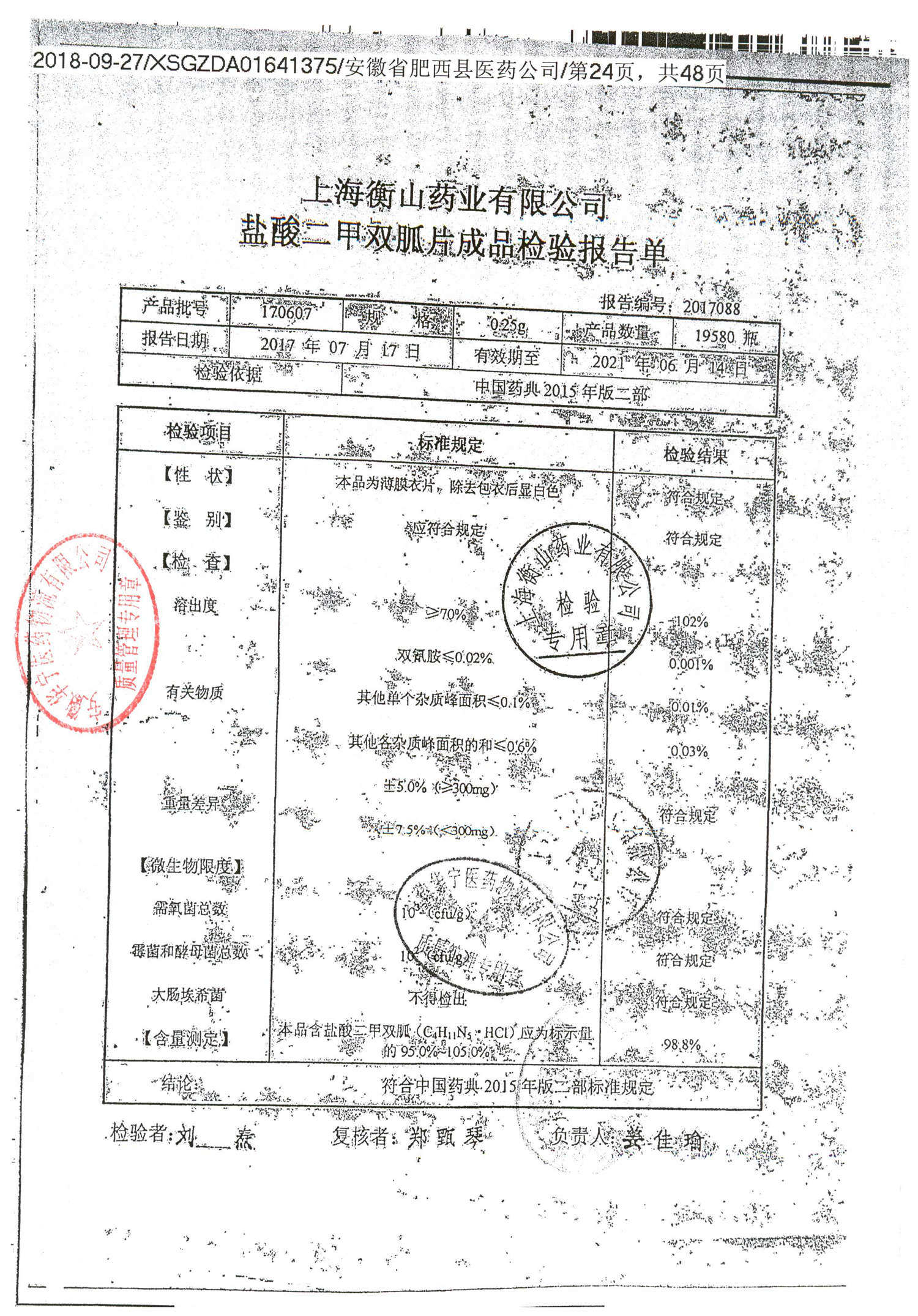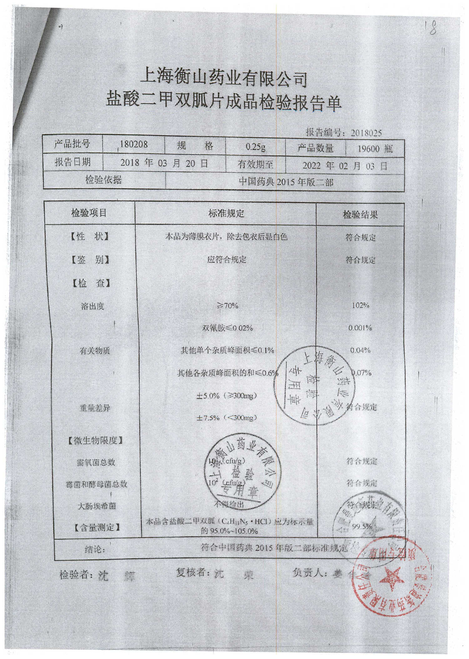 鹽酸二甲雙胍片 | 0.25g | 180805 | 查看詳情 |