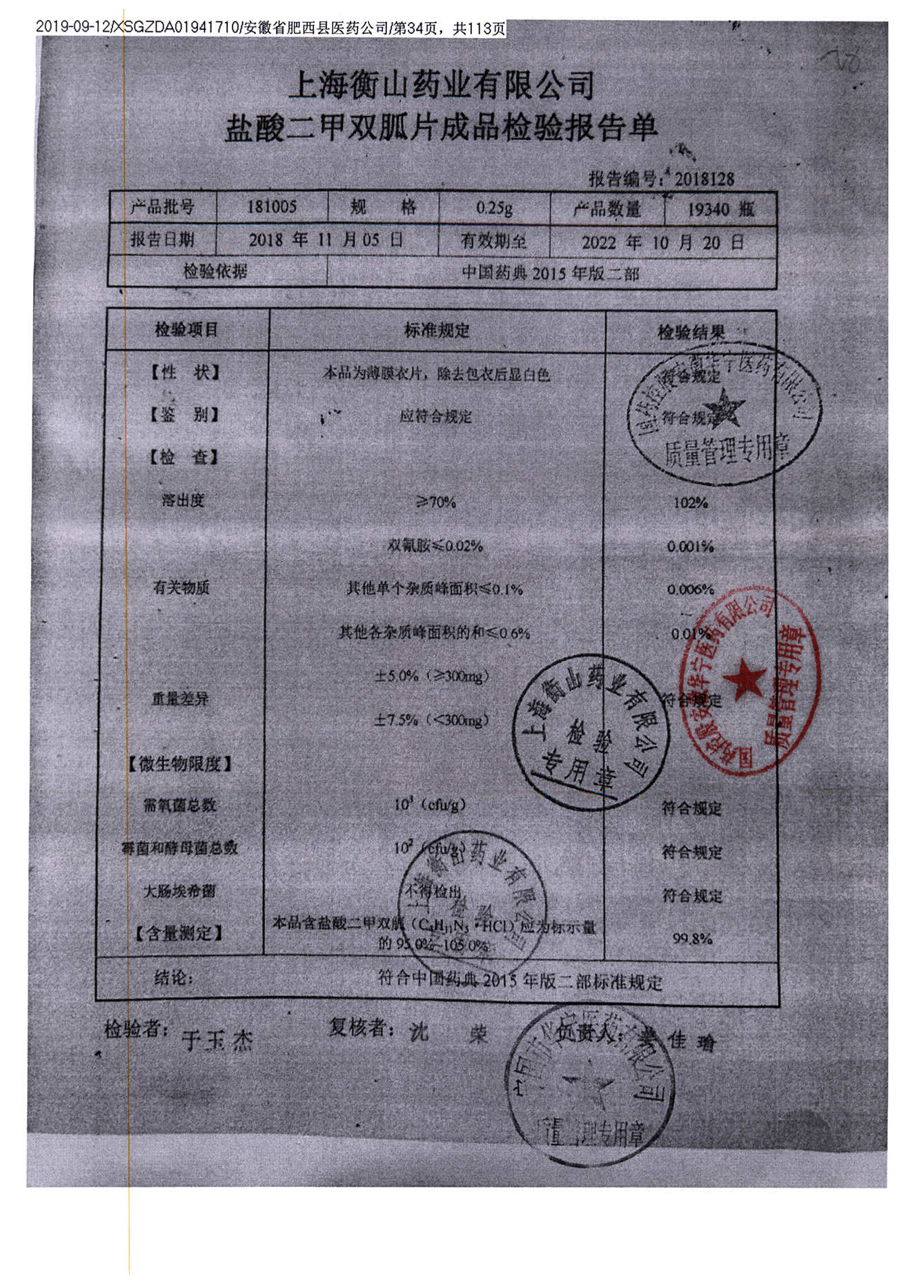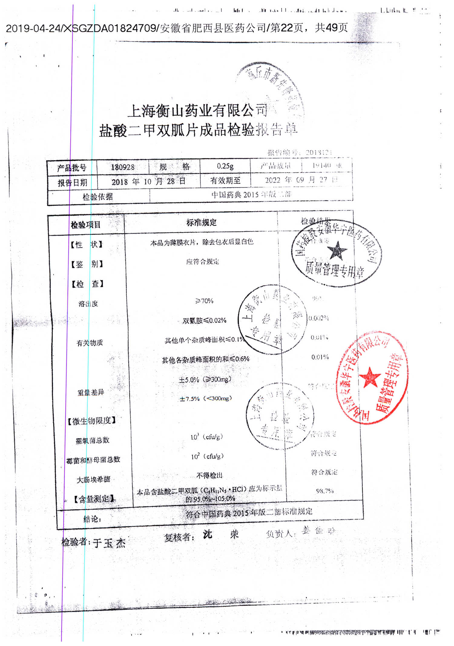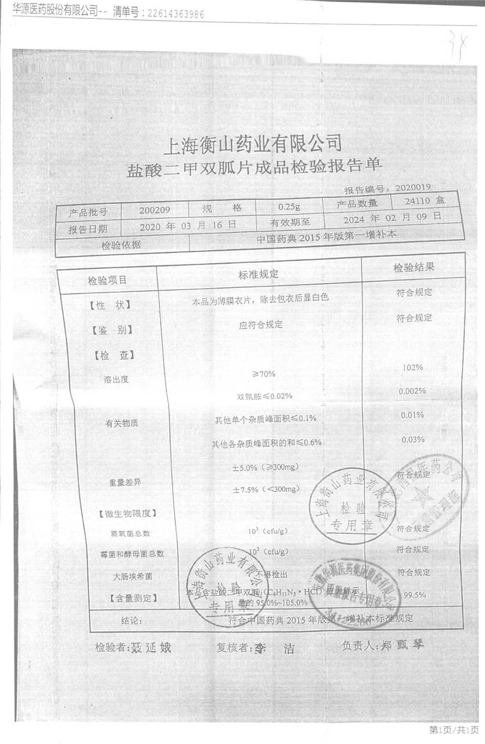 鹽酸二甲雙胍片 | 0.25g | 190912 | 查看詳情 |