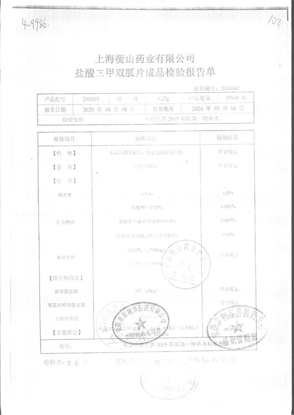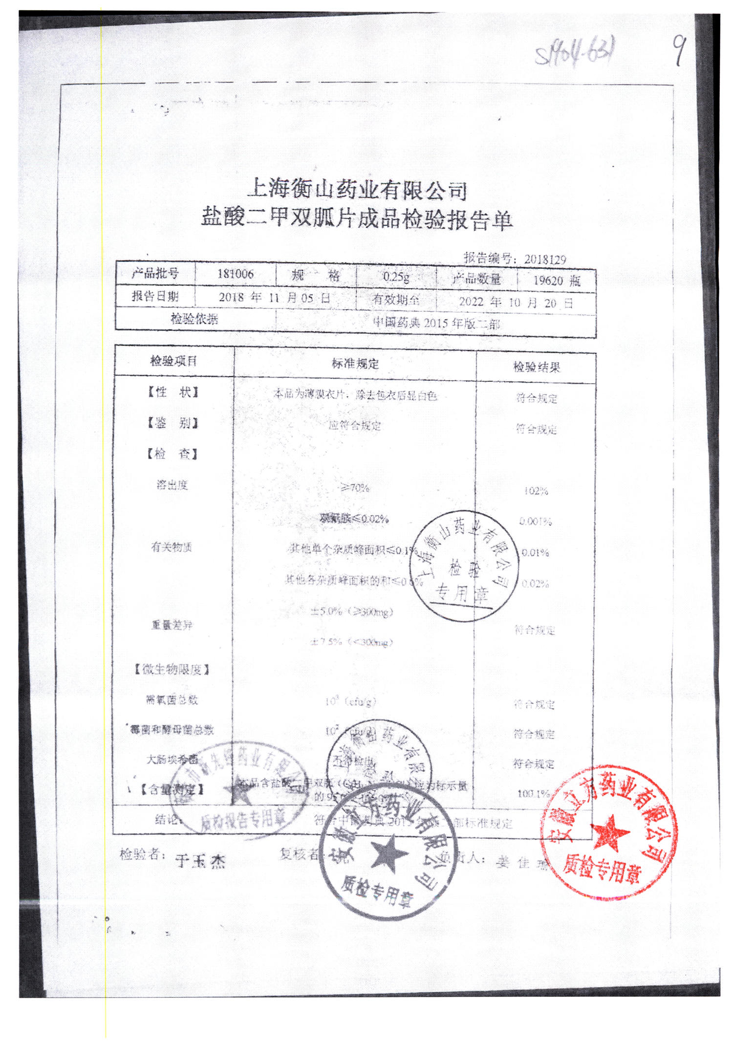 名稱(chēng) | 規(guī)格 | 批號(hào) | 藥檢報(bào)告 |