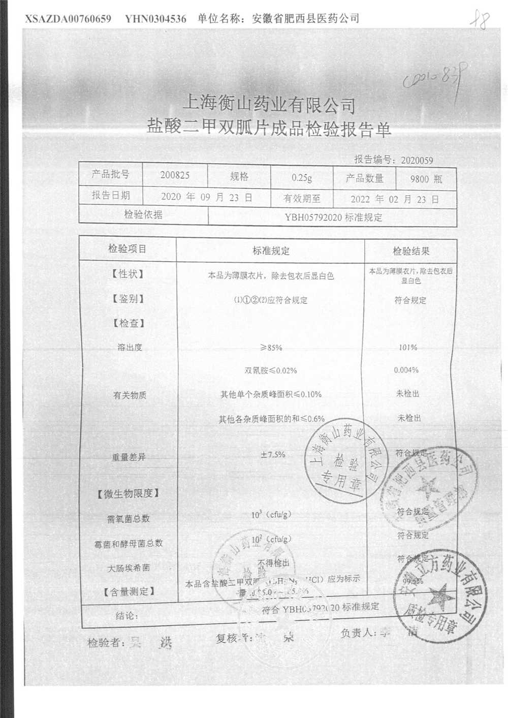 鹽酸二甲雙胍片 | 0.25g | 200209 | 查看詳情 |