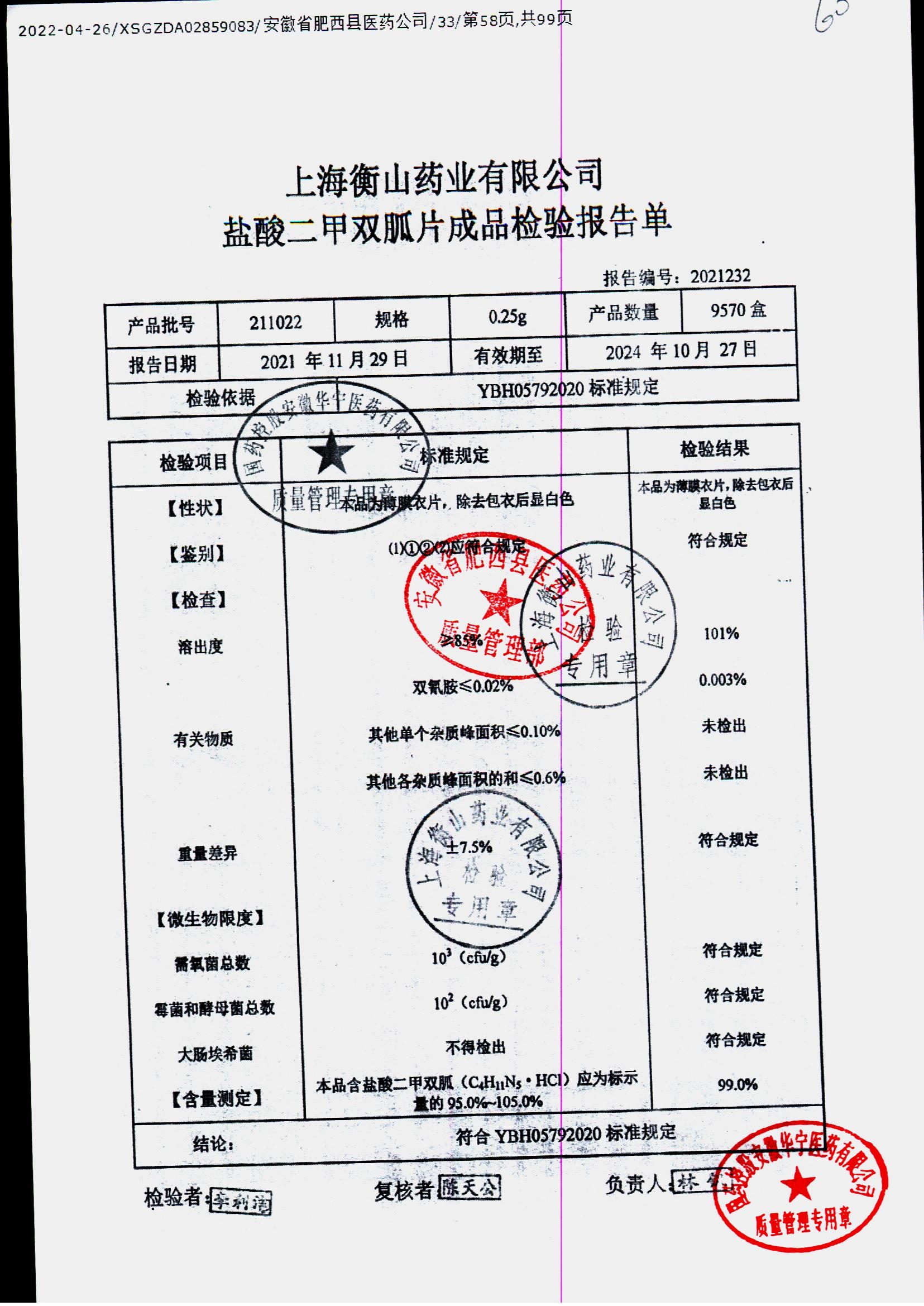 鹽酸二甲雙胍片 | 0.25g | 210910 | 查看詳情 |
