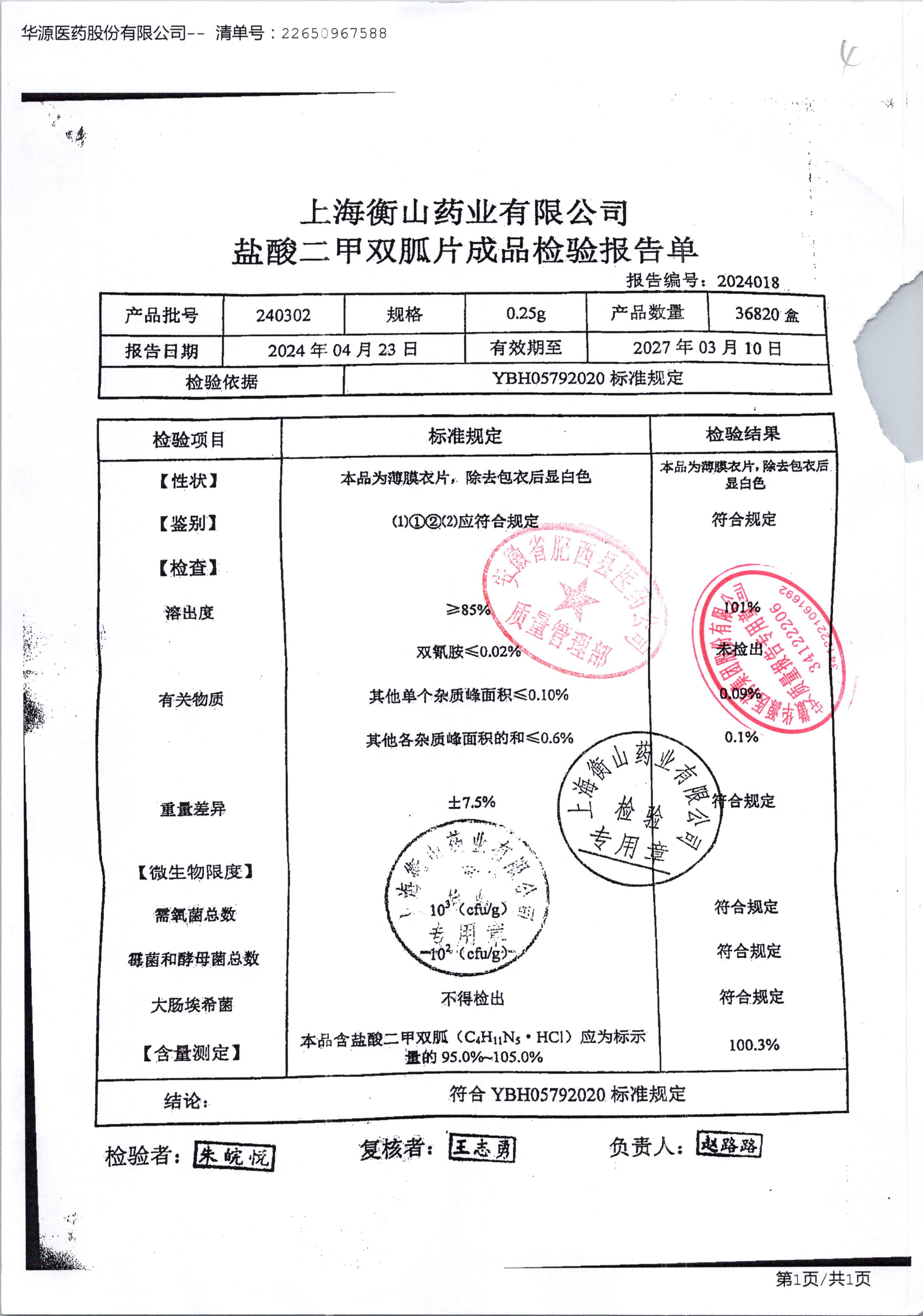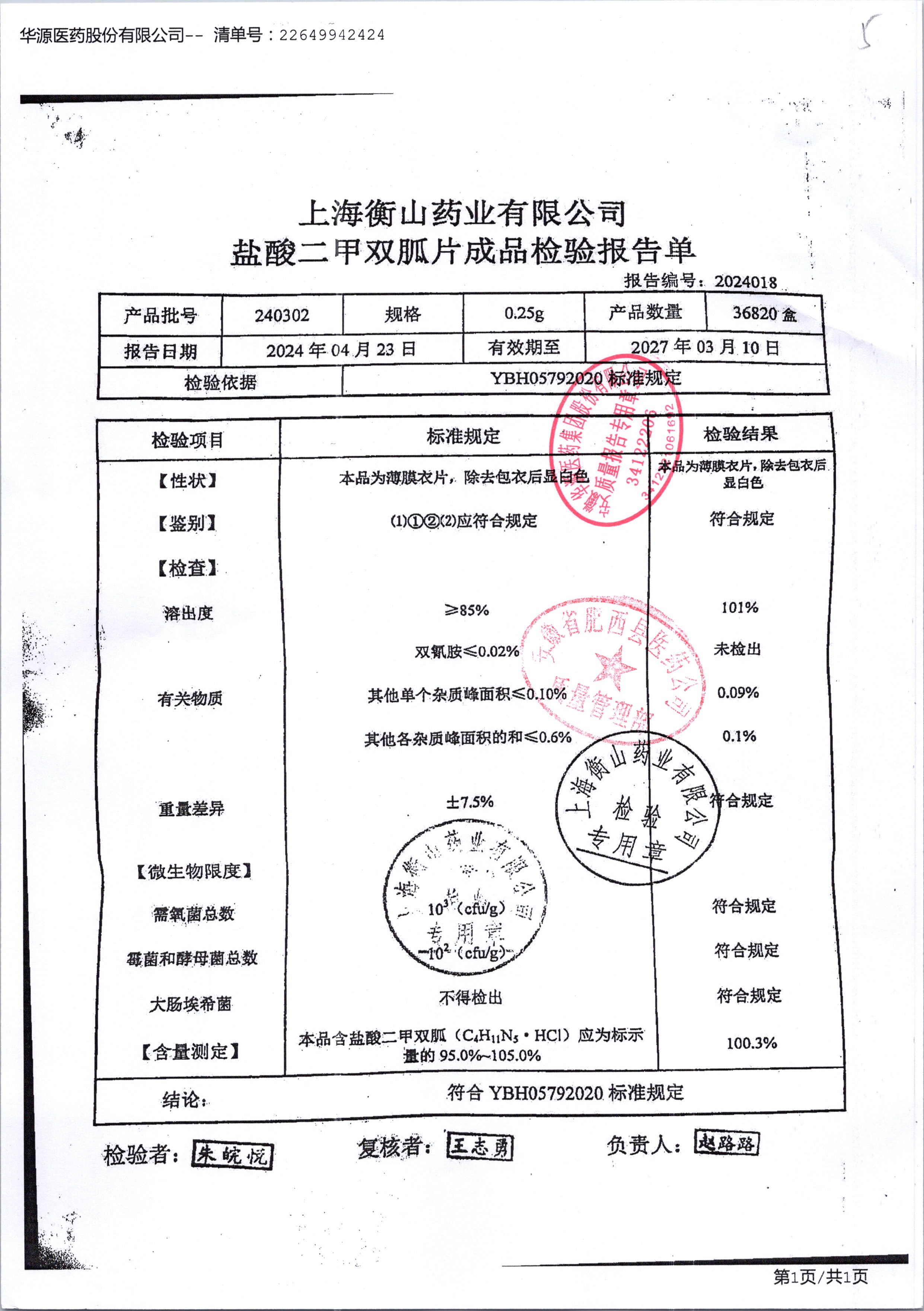 鹽酸二甲雙胍片 | 0.25g | 190302 | 查看詳情 |