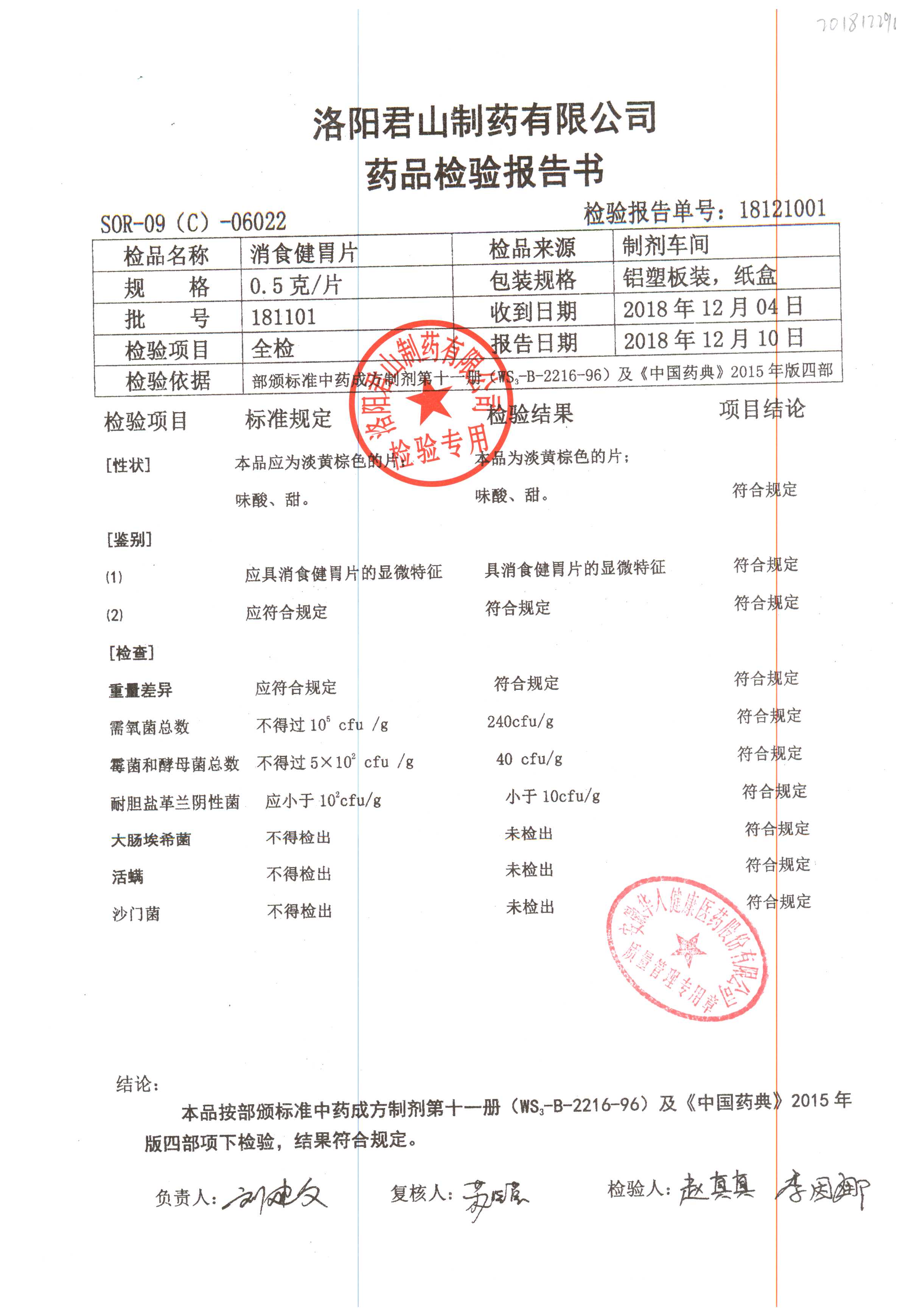 名稱 | 規(guī)格 | 批號 | 藥檢報(bào)告 |