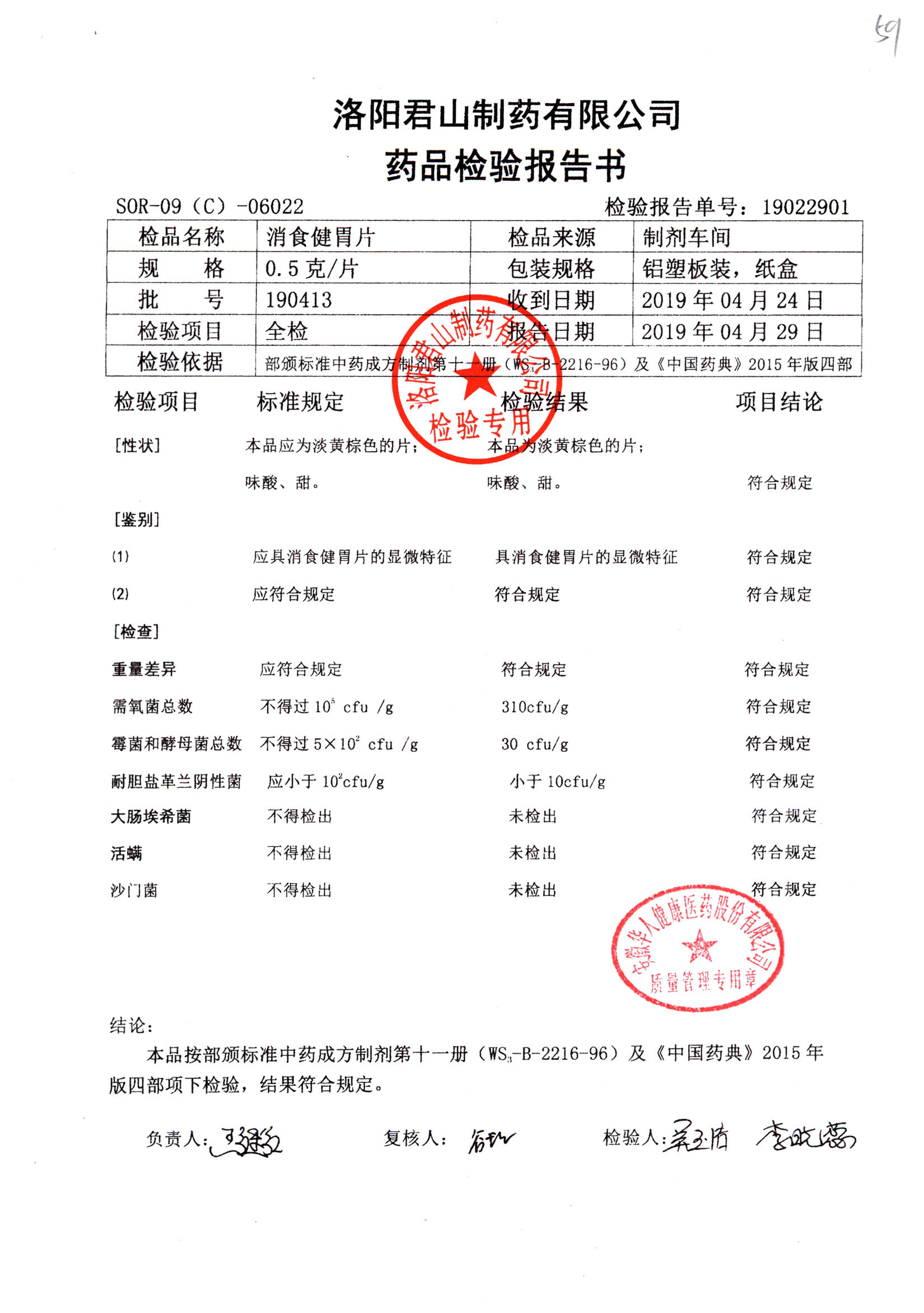 消食健胃片 | 0.5g | 190413 | 查看詳情 |