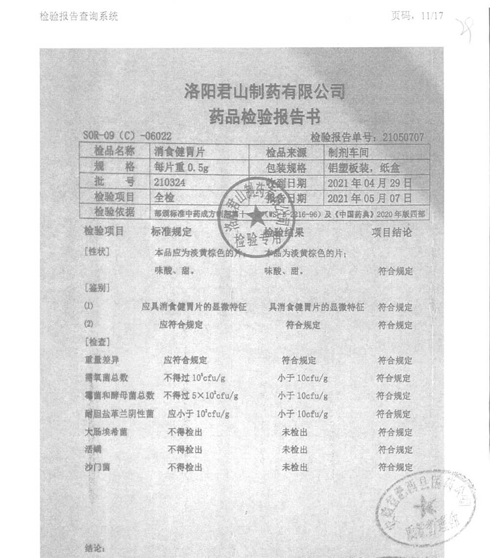 消食健胃片 | 0.5g | 180711 | 查看詳情 |