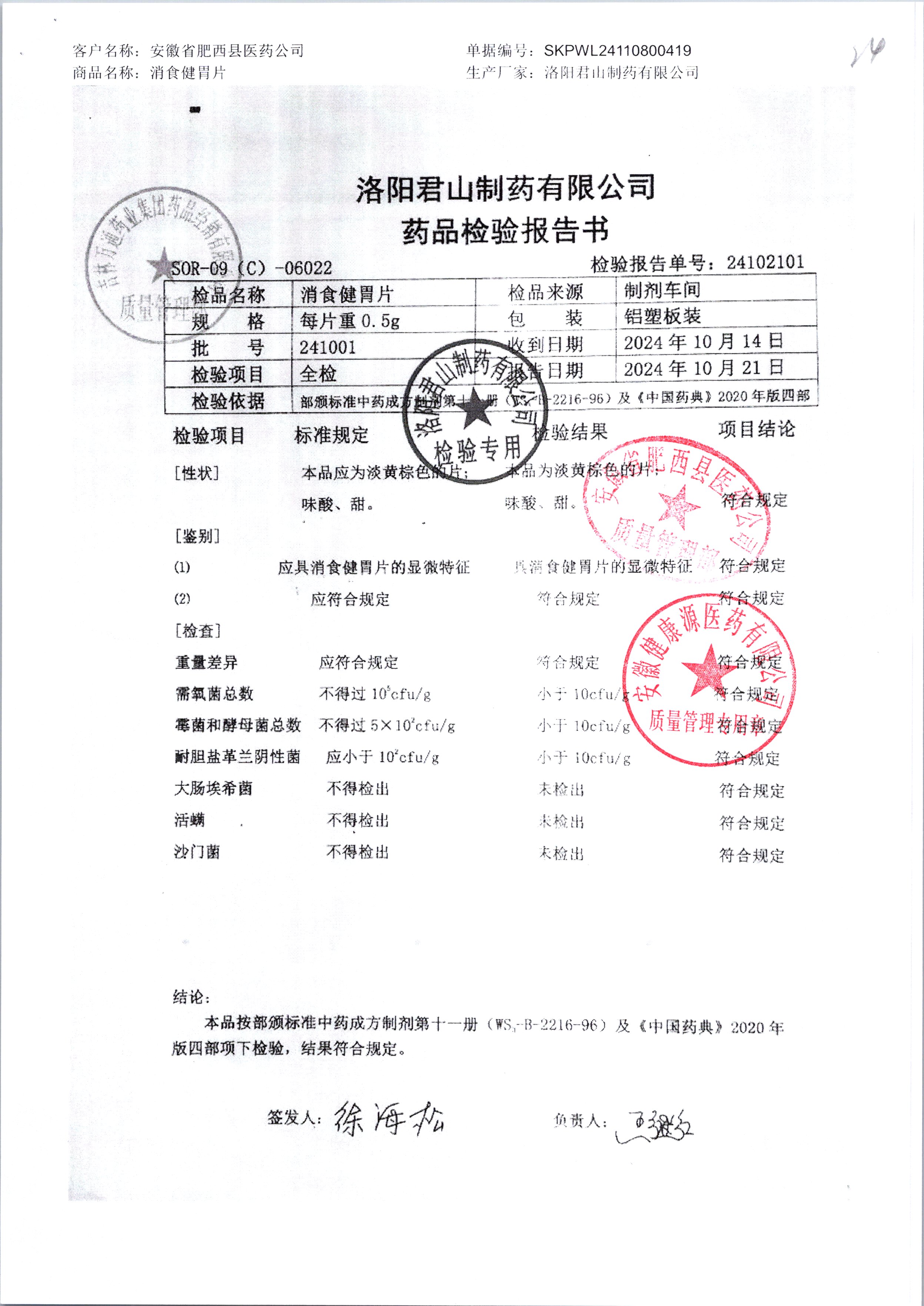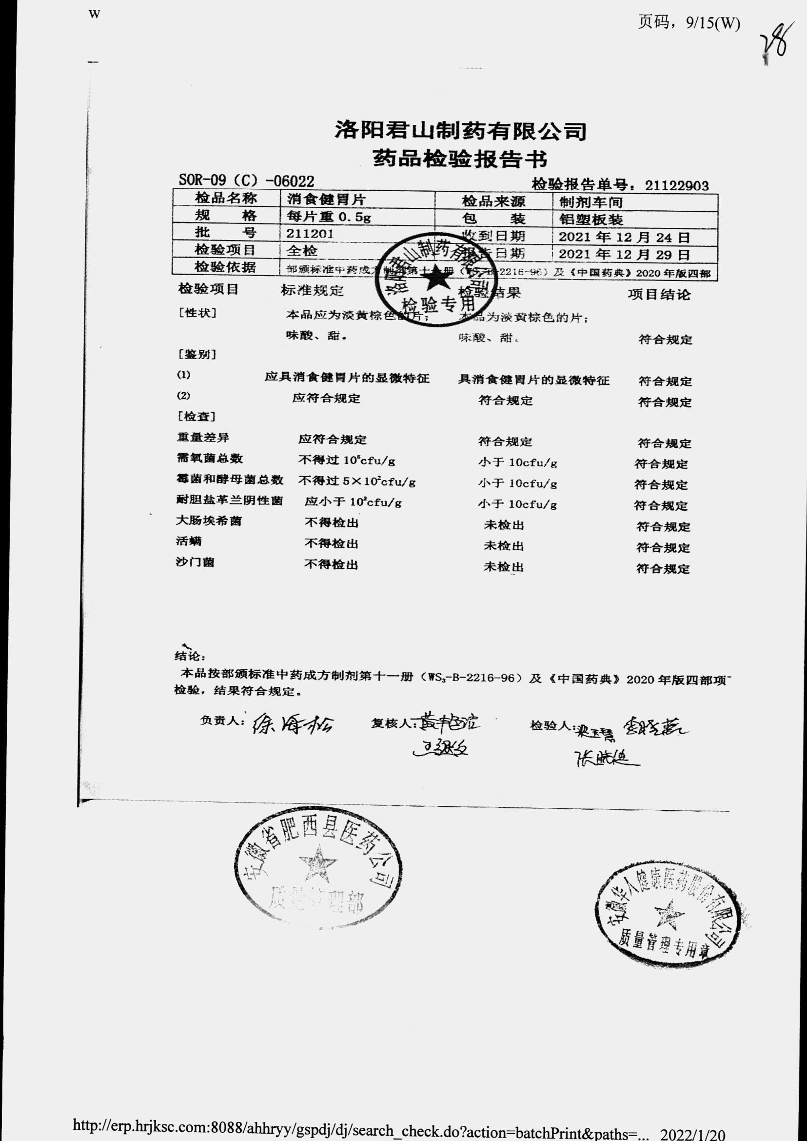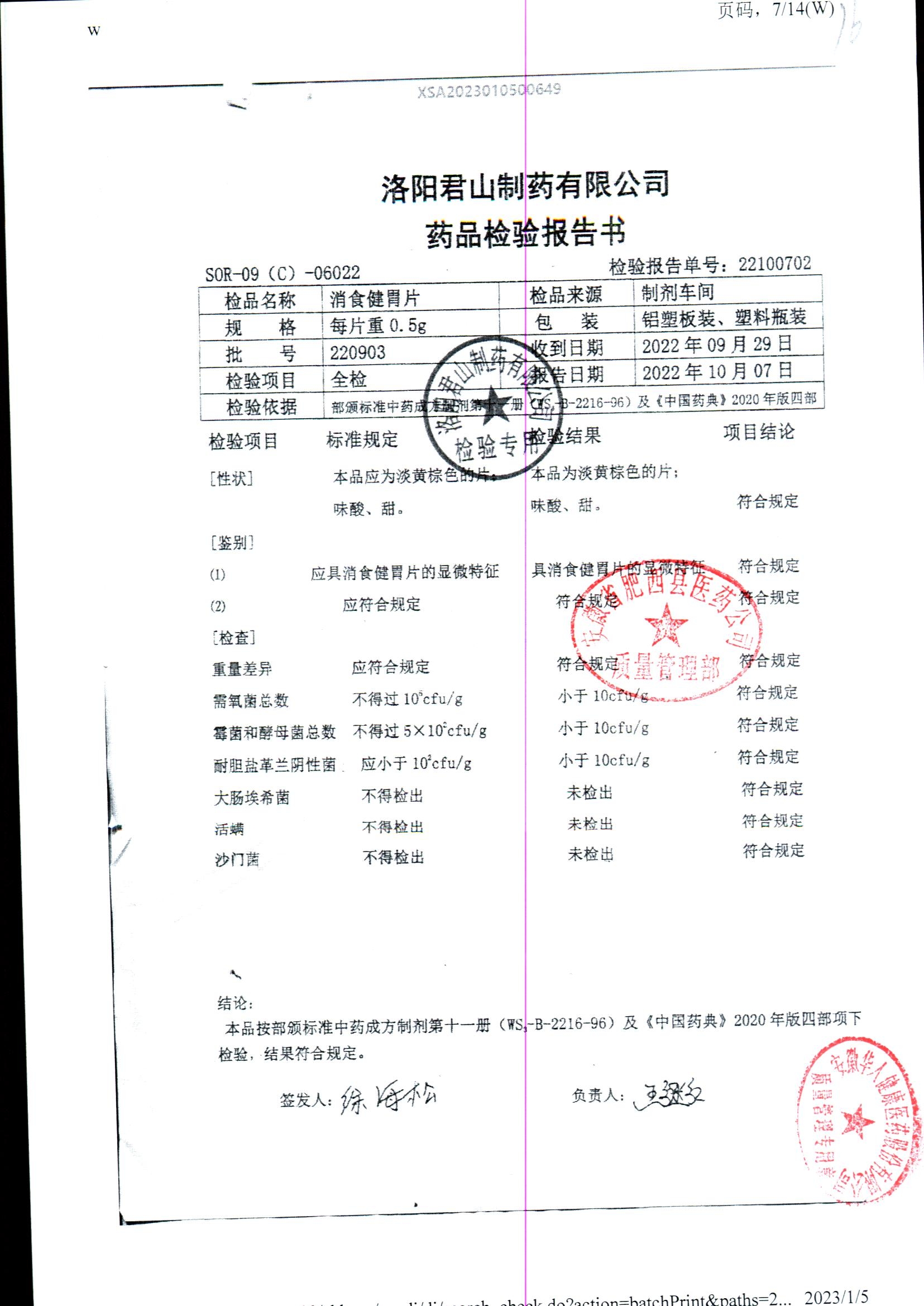 消食健胃片 | 0.5g | 220903 | 查看詳情 |