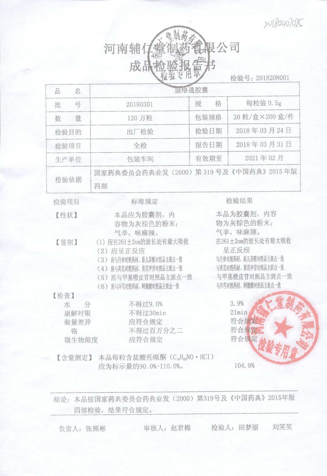 腦絡(luò)通膠囊 | 0.5g | 20180401 | 查看詳情 |