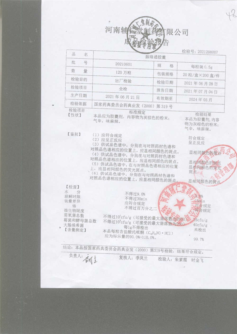 腦絡(luò)通膠囊 | 0.5g | 20210901 | 查看詳情 |