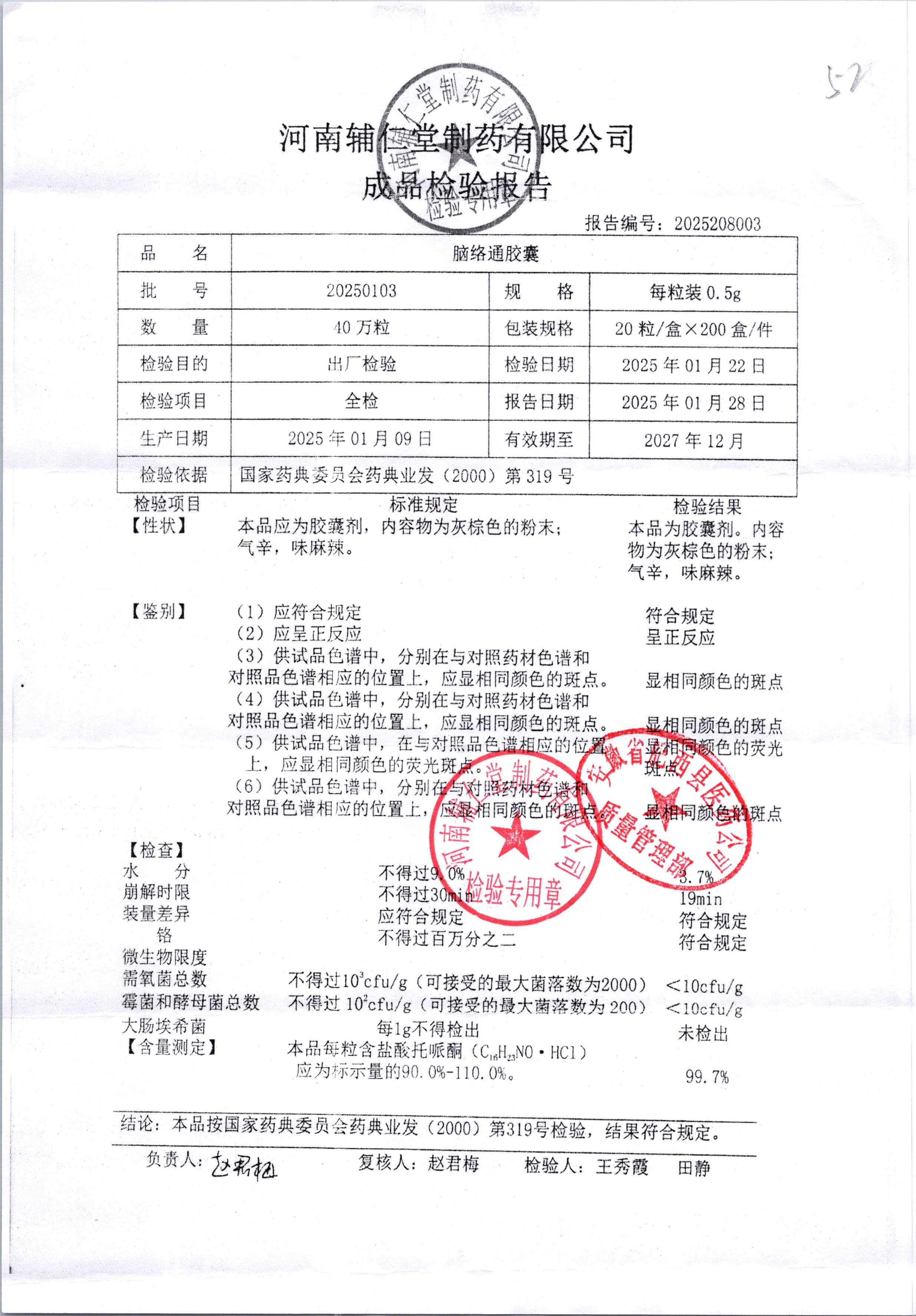 腦絡(luò)通膠囊 | 0.5g | 20250103 | 查看詳情 |