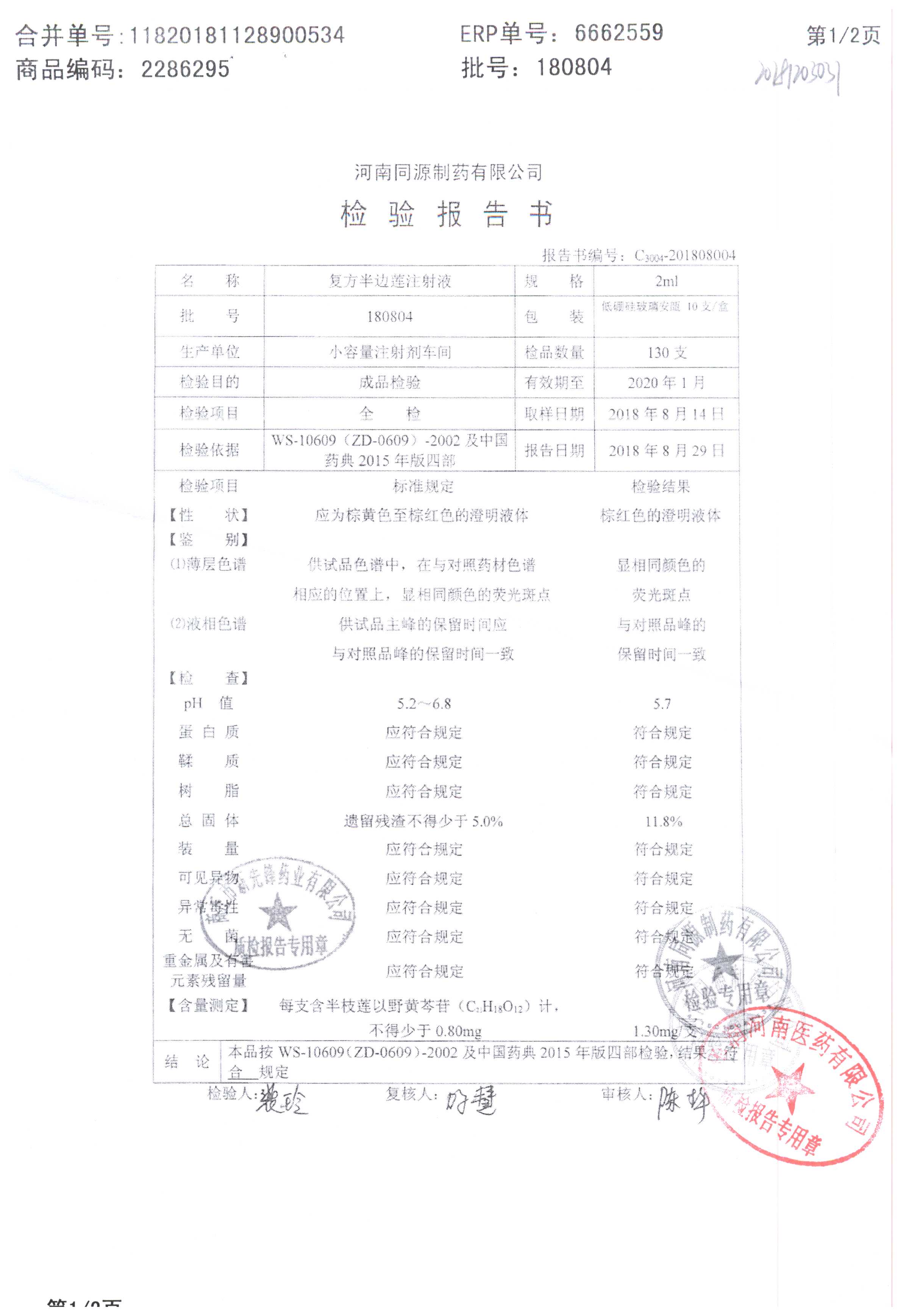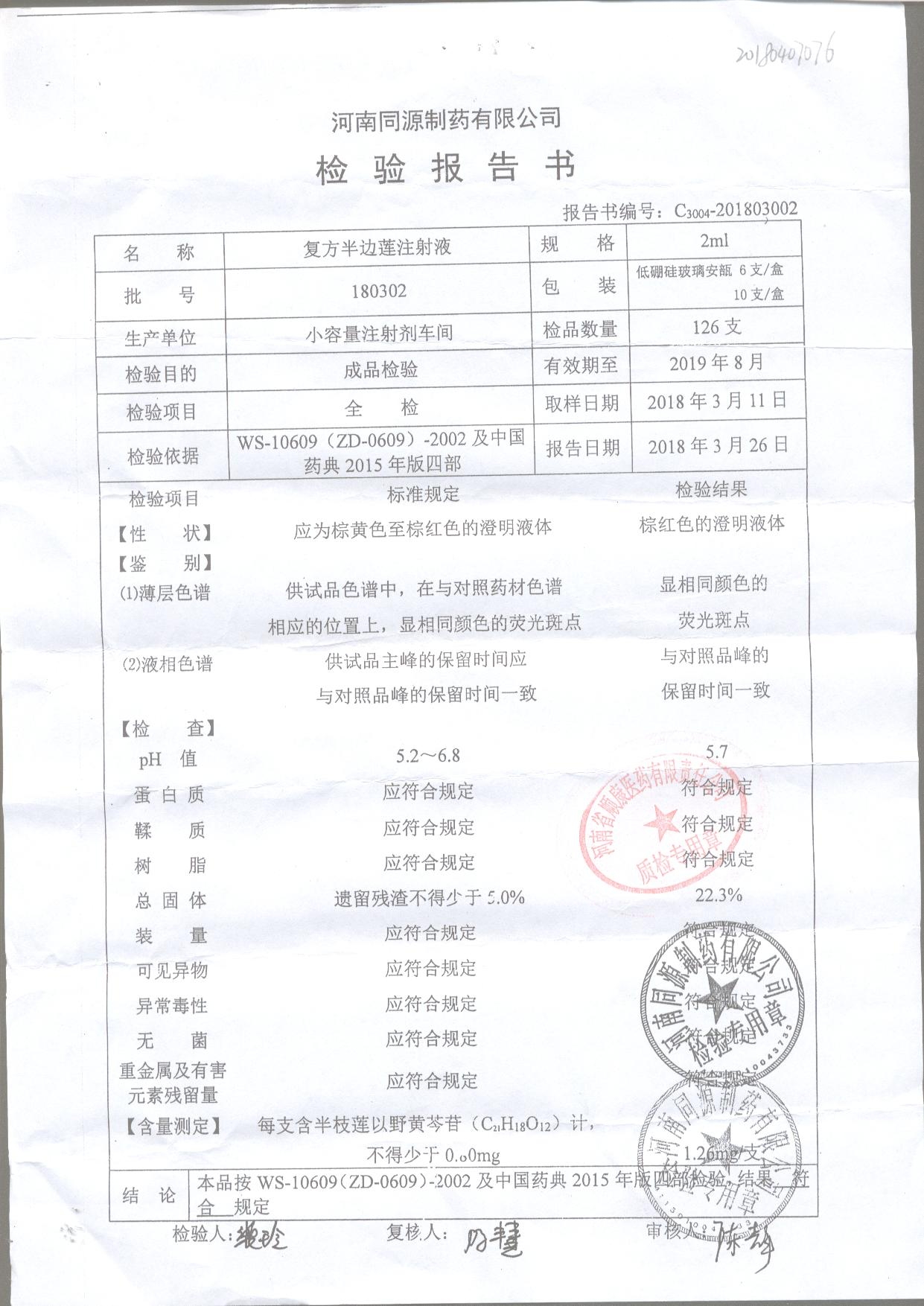 復方半邊蓮注射液 | 2ml | 180401 | 查看詳情 |