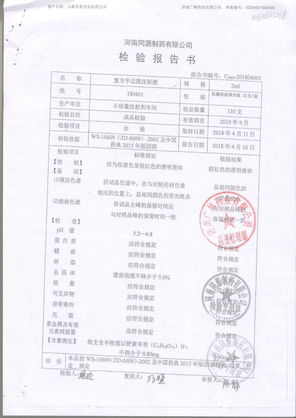 復方半邊蓮注射液 | 2ml | 180804 | 查看詳情 |
