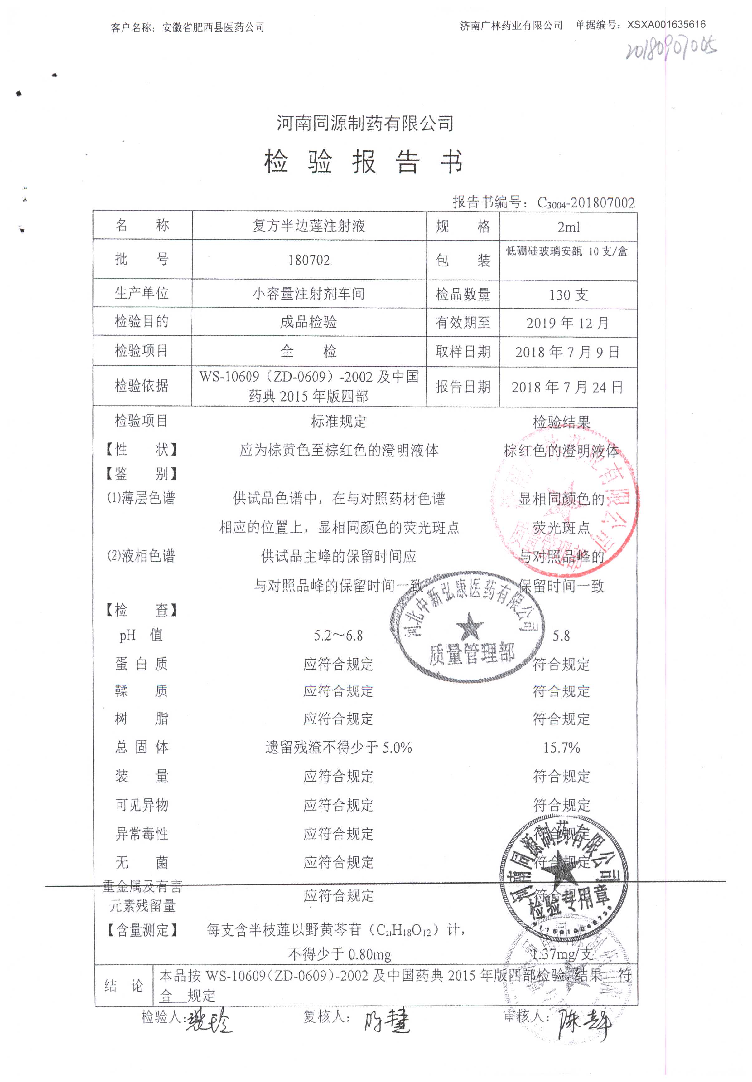 復方半邊蓮注射液 | 2ml | 180602 | 查看詳情 |
